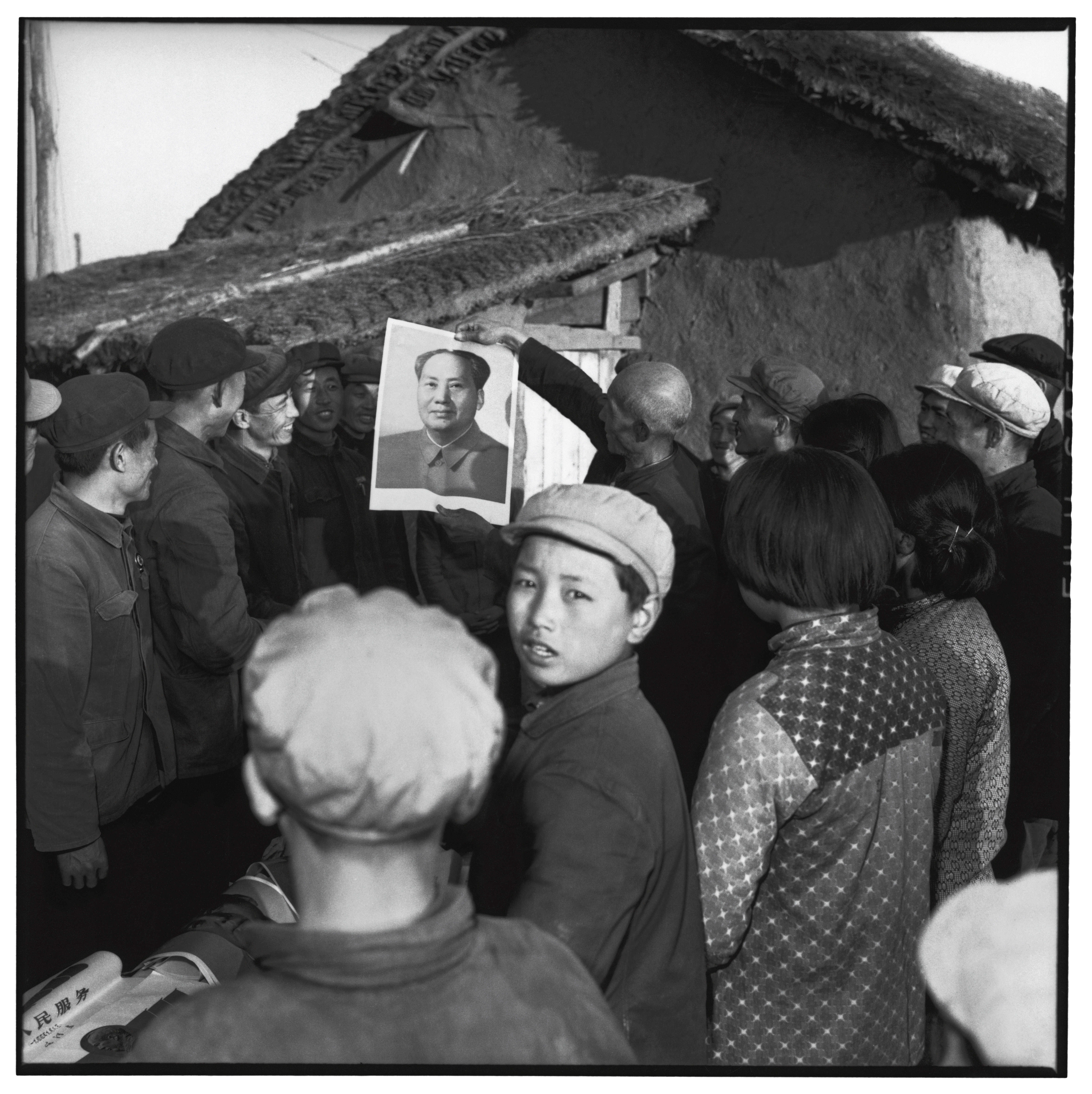 The mass produced Mao portraits displayed at the national conference are identical to the one a peasant from Acheng county exhibits to his neighbors. Acheng county, Heilongjiang province, 2 November 1966.