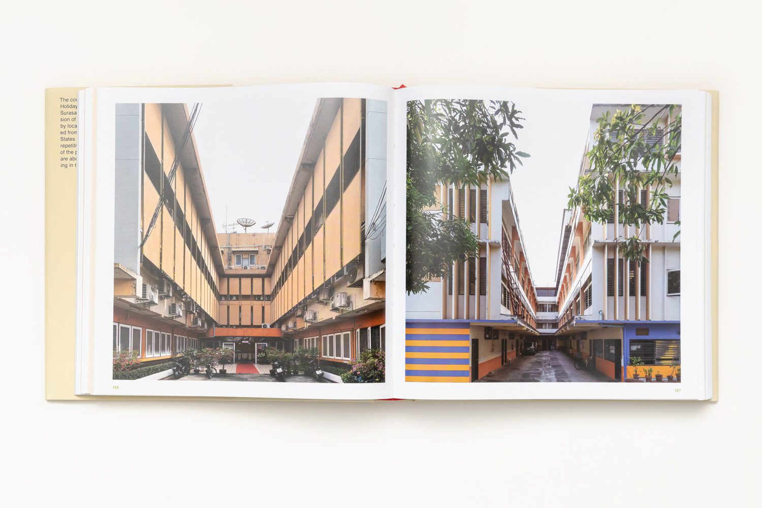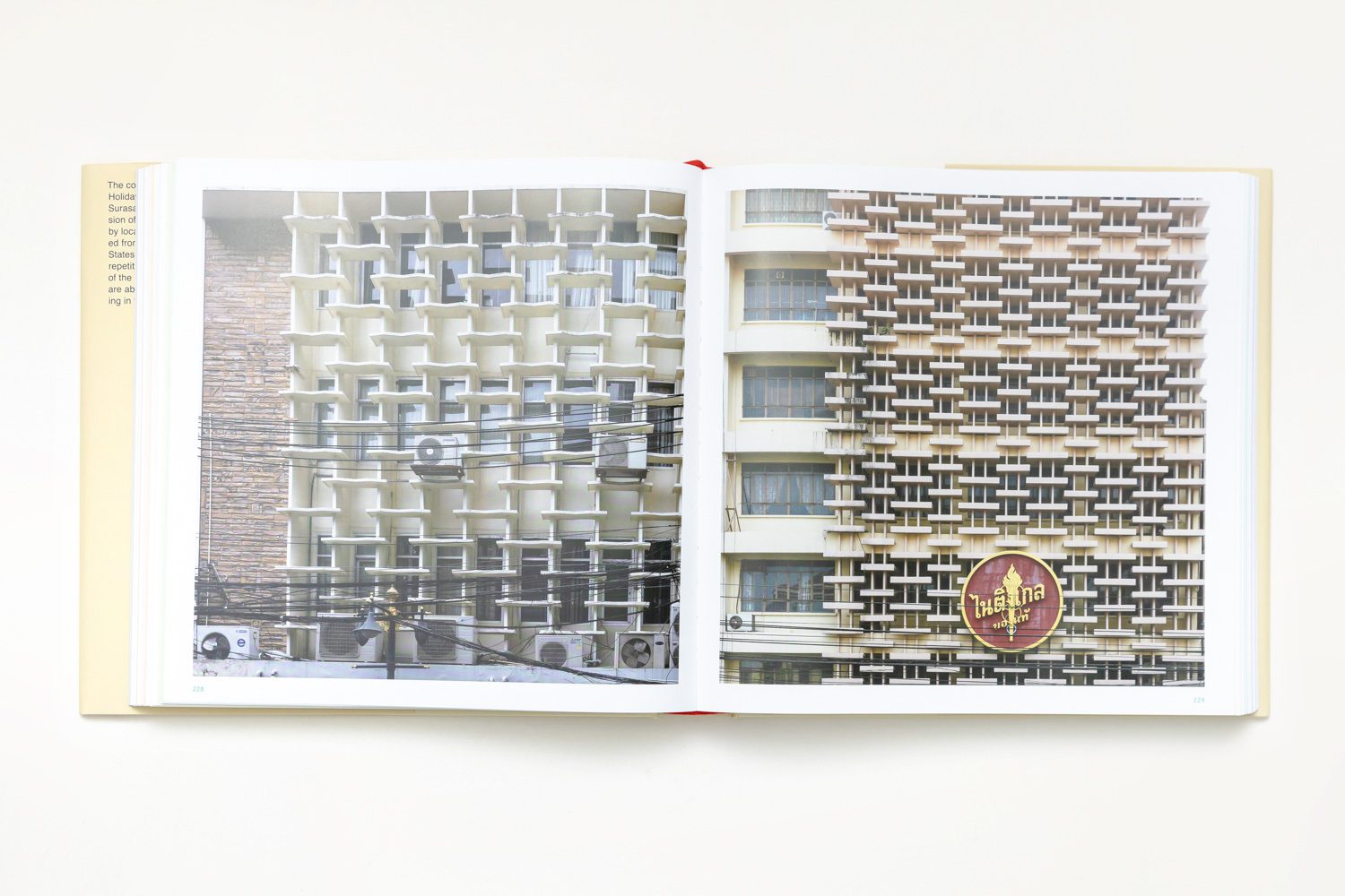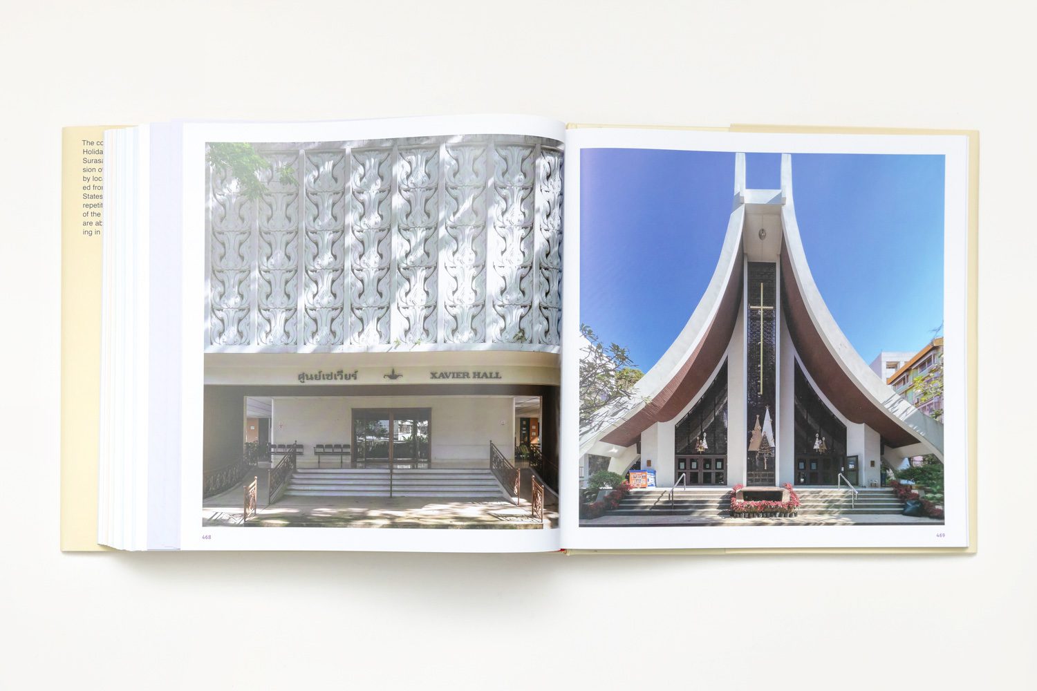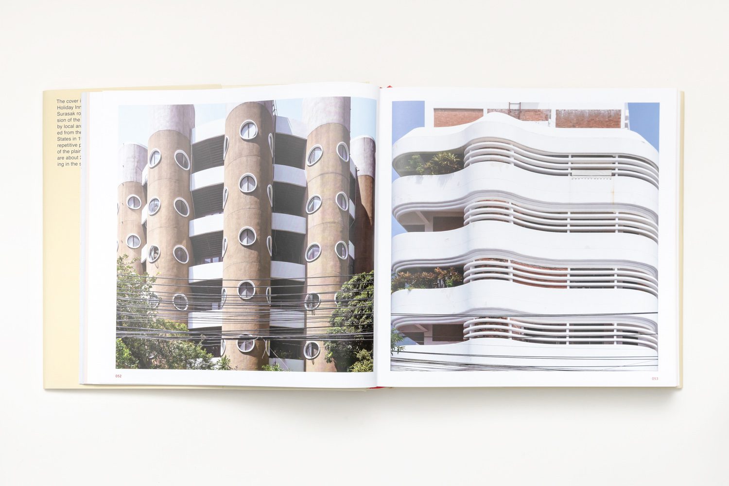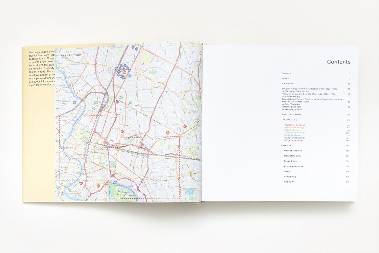 หนังสือ ‘Bangkok Modern: Architecture of the 1950s-1970s’ เป็นหนังสือบันทึกมุมมองต่อสถาปัตยกรรมยุคโมเดิร์นในกรุงเทพฯ ผ่านสายตาของ Walter Koditek นักผังเมืองชาวเยอรมันที่เดินเท้าจับกล้องถ่ายภาพสถาปัตยกรรม เคยมีผลงานตีพิมพ์เป็นหนังสือสถาปัตยกรรมในเมืองอย่างฮ่องกง พนมเปญ ฯลฯ มาแล้ว แถมยังตั้งใจพล็อตจุดพิกัดลงบนแผนที่ให้เราได้เดินทางไปพบกับอาคารสถานที่ในเมืองนั้นๆ โดยหนังสือเล่มนี้เขาได้ขยับมาถ่ายภาพ façade ของสถาปัตยกรรมยุคโมเดิร์นในกรุงเทพฯ ประเทศไทย ในยุคสมัยที่เป็นศูนย์กลางของการพัฒนาทั้งก่อนหน้าและสืบเนื่องจากนโยบายต้านคอมมิวนิสต์ของสหรัฐอเมริกาที่หันไปทางไหน ก็มีน้ำไหล ไฟสว่าง ถนนหนทางก็สะดวก พร้อมกับการเติบโตในภาคอุตสาหกรรม