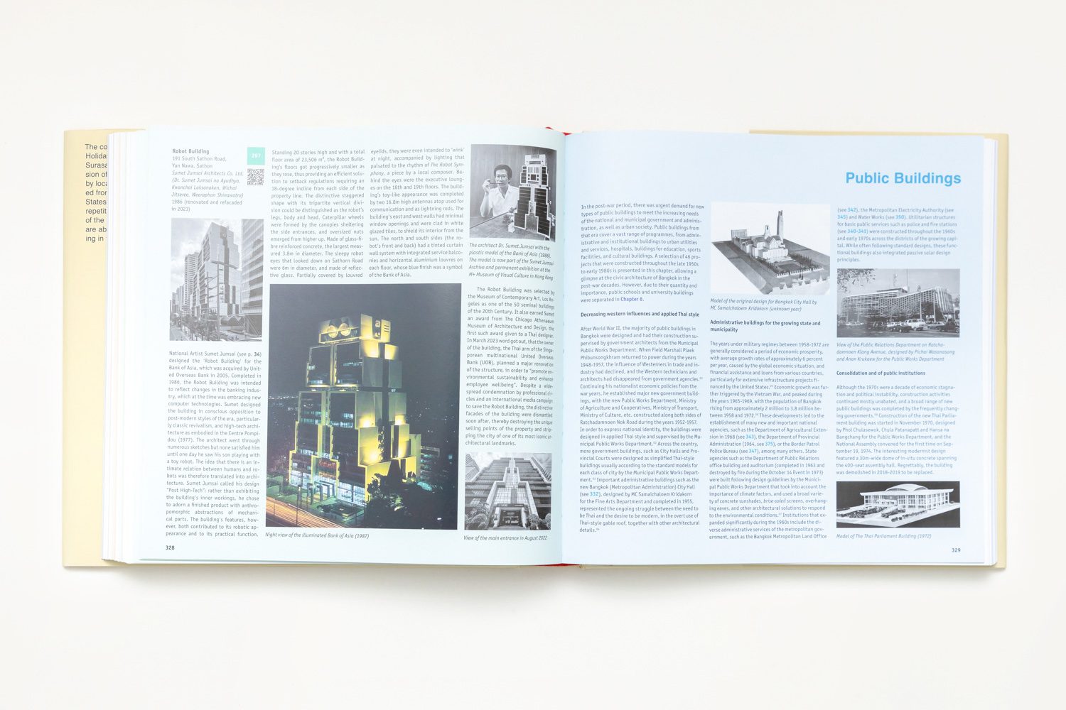 ยังมีส่วนอื่นๆ ที่มาเสริมรสชาติของความเข้มข้น ทั้งบทความที่เล่าสถานการณ์ภาพรวมทางเศรษฐกิจ การเมืองที่สัมพันธ์กับสหรัฐอเมริกา สถาปัตยกรรมไทยและกรุงเทพฯ ช่วงก่อนและยุคสงครามเย็นของชมชน ฟูสินไพบูลย์ และพีรศรี โพวาทอง ตามต่อมาด้วยพลังสร้างสรรค์จากคอนกรีตของวงการสถาปนิกไทยโดยพินัย สิริเกียรติกุล และบันทึกต่อการทำลายรื้อถอนสถาปัตยกรรมในยุคโมเดิร์นอย่างโรงภาพยนตร์สกาลา และโรงแรมดุสิตธานี กรุงเทพฯ ของวีระพล สิงห์น้อย ที่ครบรสและเต็มอิ่มกับสถาปัตยกรรมยุคโมเดิร์นที่เป็นหมุดหมายของการออกแบบ การขยายตัวทางเศรษฐกิจในเมือง พร้อมกับสังเกตการณ์ในการอนุรักษ์สถาปัตยกรรมที่เสี่ยงต่อการถูกทำลาย ผู้ที่สนใจหนังสือทางด้านสถาปัตยกรรมและเมืองกรุงเทพฯ สามารถตามไปเดินท่องเมือง ด้วยการเอามือถือสแกนพิกัดแผนที่ระบุตำแหน่งในหนังสือได้เลยทีเดียว