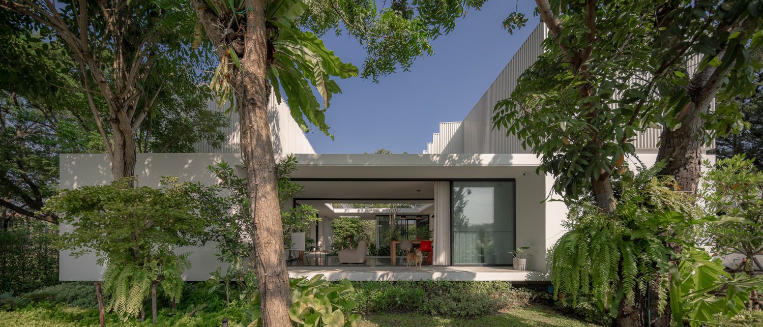 กาจวิศว์คัดสรร 3 ผลงานซึ่งสะท้อนถึง ‘สิ่งที่อยู่เหนือการควบคุม’ และ ‘วิธีการสรรเสริญ’ ที่ต่างกันไป โครงการบ้านใกล้วัด ออกแบบมาเป็นผืนผ้าใบให้ธรรมชาติที่เผยตัวอย่างงดงาม และแม้ว่าเจ้าของบ้านจะกลับมาอยู่บ้านนานๆ ครั้ง แต่การเปิดรับแสงธรรมชาติและลมเข้ามาผ่านช่องเล็กๆ ระหว่างบานหน้าต่างเปิดปิด ก็ช่วยให้บ้านไม่อับชื้น
