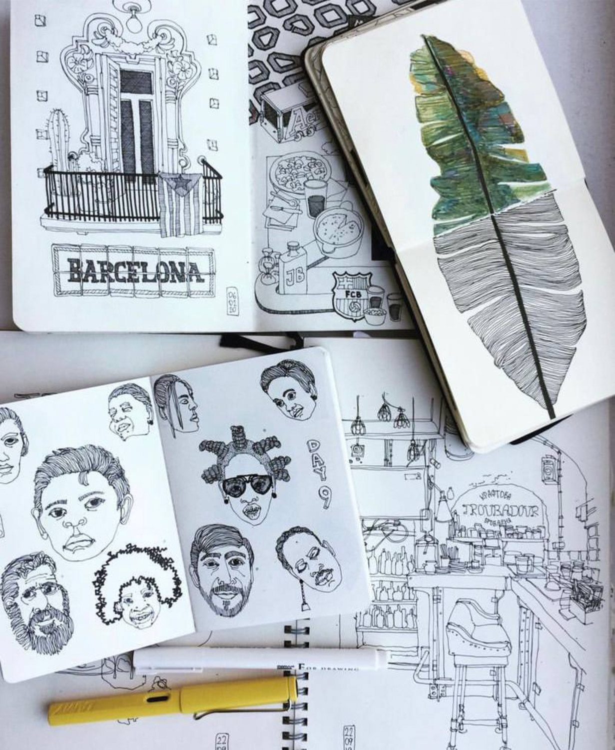 ฉันทำงานแบบทางไกลมาตลอด ไม่มีสถานที่ตายตัวที่ต้องผูกติดอยู่ด้วยเลย ฉันไม่เคยไปเยือนหลายเมืองที่ตัวเองวาดภาพประกอบให้ด้วยซ้ำ แต่ฉันจะใช้เวลาในการศึกษาพื้นที่เหล่านั้นอย่างตั้งใจ ค่อยๆ ทำความเข้าใจอัตลักษณ์เฉพาะตัวของแต่ละเมือง ผ่านทั้งการค้นคว้าและการสังเกตจากมุมมองของคนนอก