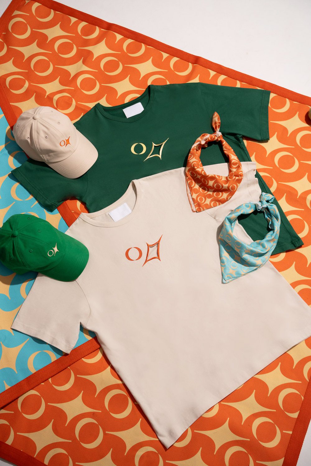 โมโนแกรมของโปรเจกต์ collaboration นี้ถูกออกแบบใหม่จากการรวมตัวของสัญลักษณ์ ‘( )’ ของ The Society และลวดลาย ‘flare’ เอกลักษณ์ของแบรนด์ ซึ่งปรากฏทั้งในเวอร์ชันลายพิมพ์และลายฉลุพิเศษบนหมวก เสื้อยืด ผ้าพันคอ ไปจนถึงเสื่อ การฉลุทำให้ได้เครื่องสวมใส่ที่มีการระบายอากาศเหมาะกับหน้าร้อนของไทย และยังทำให้เกิดความเปิดเผยที่ยังปกปิดบนเนื้อผ้า เพิ่มพูนสเน่ห์ของหน้าร้อนด้วยจริตที่มีชั้นเชิง อีกทั้งแฝงด้วยกลิ่นอายและภาพของเมืองติดทะเล ที่ที่แสงแดดตกกระทบน้ำทะเลสะท้อนเปล่งประกายวาววับจับตา