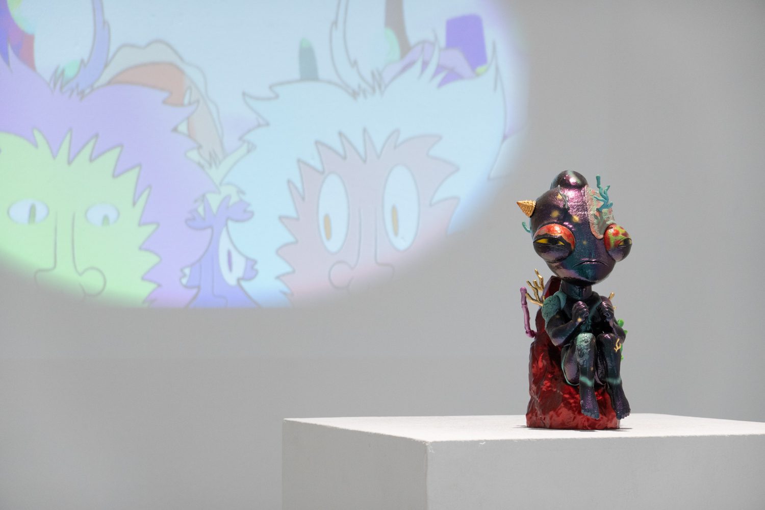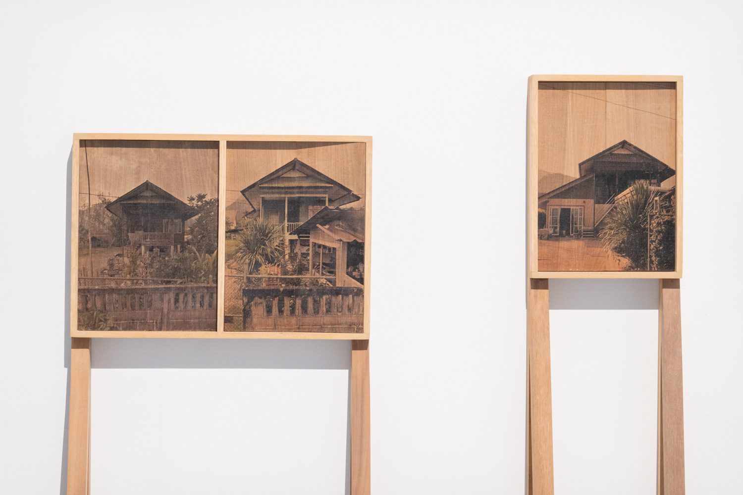 ใน EYP#8 ครั้งนี้ เรายังได้เห็นศิลปินอีกจำนวนหนึ่งที่เลือกสื่อสารประเด็นทางสังคมที่เกิดขึ้นในบ้านเกิดของตัวเอง อย่าง นิติธร หนูกลิ่น จากสุราษฎร์ธานี ที่พูดเรื่องปัญหาสิ่งแวดล้อมทางทะเลผ่าน ‘NEW species’ (2025) ประติมากรรมหน้าตาน่ารักน่าชังที่มีปะการังและเปลือกหอยงอกออกมาตามลำตัวคล้ายเนื้องอกและนั่งคุดคู้ราวกับถูกพันธนาการอยู่บนโขดหิน รวมทั้งภาพยนตร์อนิเมชันเกี่ยวกับชีวิตใต้ทะเลเรื่อง ‘Kammapanthu’ (กัมมะพันธุ) (2025) ส่วนศิลปินอีกคนคือ ลลิตา สิงห์คำปุก ก็ใช้ผลงานสื่อผสมจัดวาง ‘Till We Meet Again’ (2025) และ ‘Goodbye For Now’ (2025) บันทึกและบอกเล่าเรื่องราวของ ‘การดีดบ้าน’ ที่ครอบครัวของเธอใน อ.แม่สาย เชียงราย ใช้แก้ปัญหาน้ำท่วมซ้ำซากหลังจากเผชิญกับอุทกภัยครั้งใหญ่เมื่อปี 2567