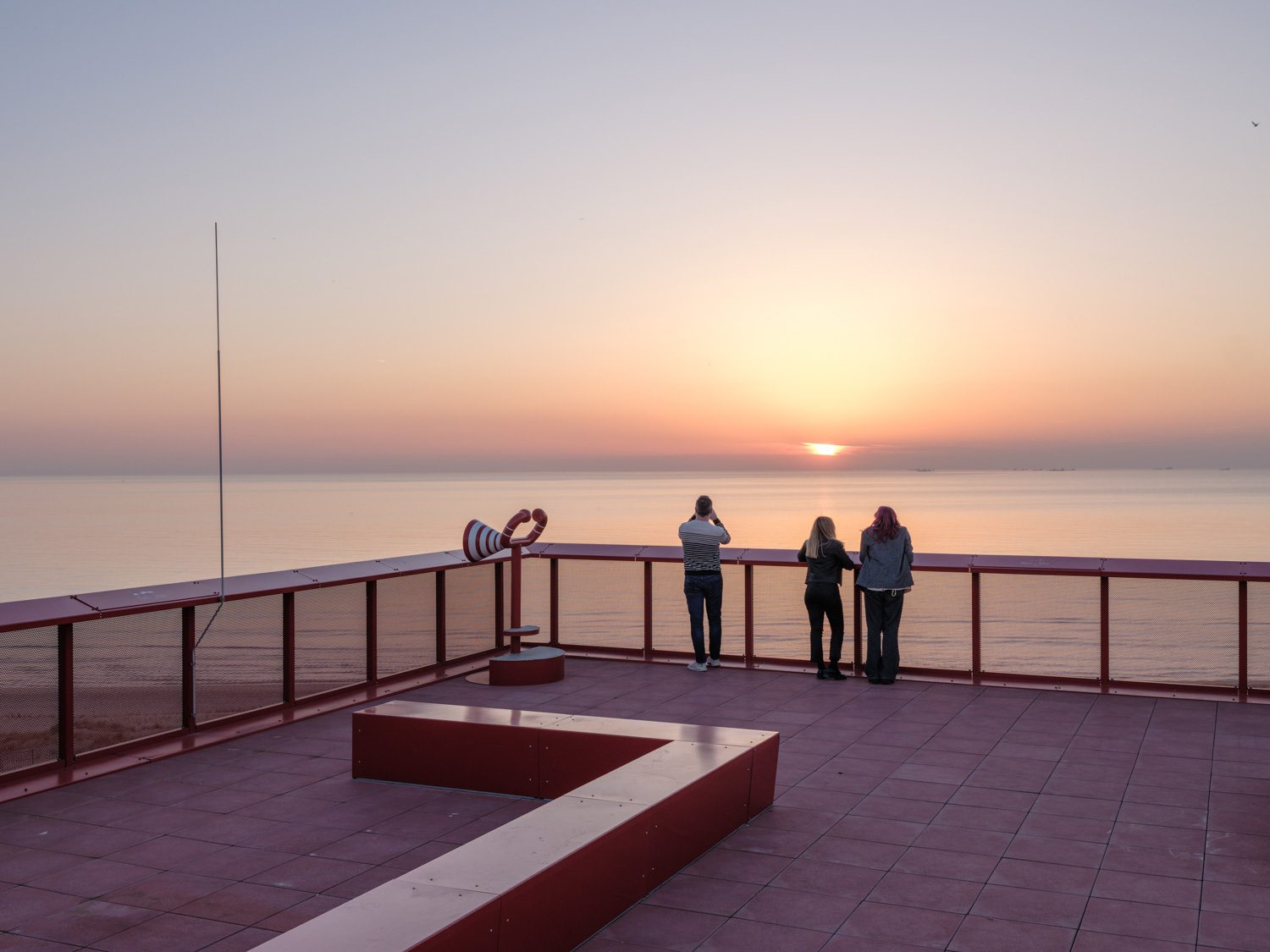 ชั้นห้าของอาคารเป็นร้านอาหาร มีบานหน้าต่างรับทัศนียภาพพระอาทิตย์ตกดินเหนือทะเลเหนือและแสงไฟระยิบระยับของท่าเรือในยามค่ำคืน ก้อนอาคารที่วางเหลื่อมกัน ทำให้เกิดพื้นที่ชมทิวทัศน์ด้านนอก ซึ่งแต่ละชั้นร้อยเรียงเข้าด้วยกันด้วยบันไดสีแดงที่ทอดตัวไปถึงดาดฟ้า เปิดให้ผู้คนดื่มด่ำบรรยากาศของทะเลเหนือ และตกผลึกเนื้อหานิทรรศการผ่านภาพของจริงที่อยู่ตรงหน้า