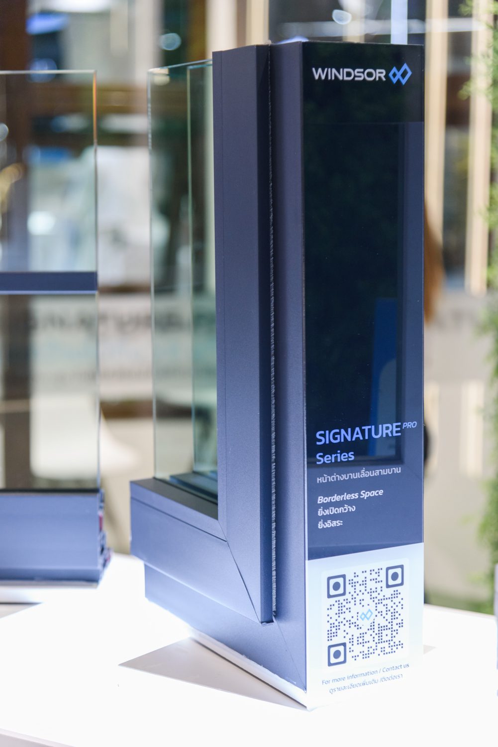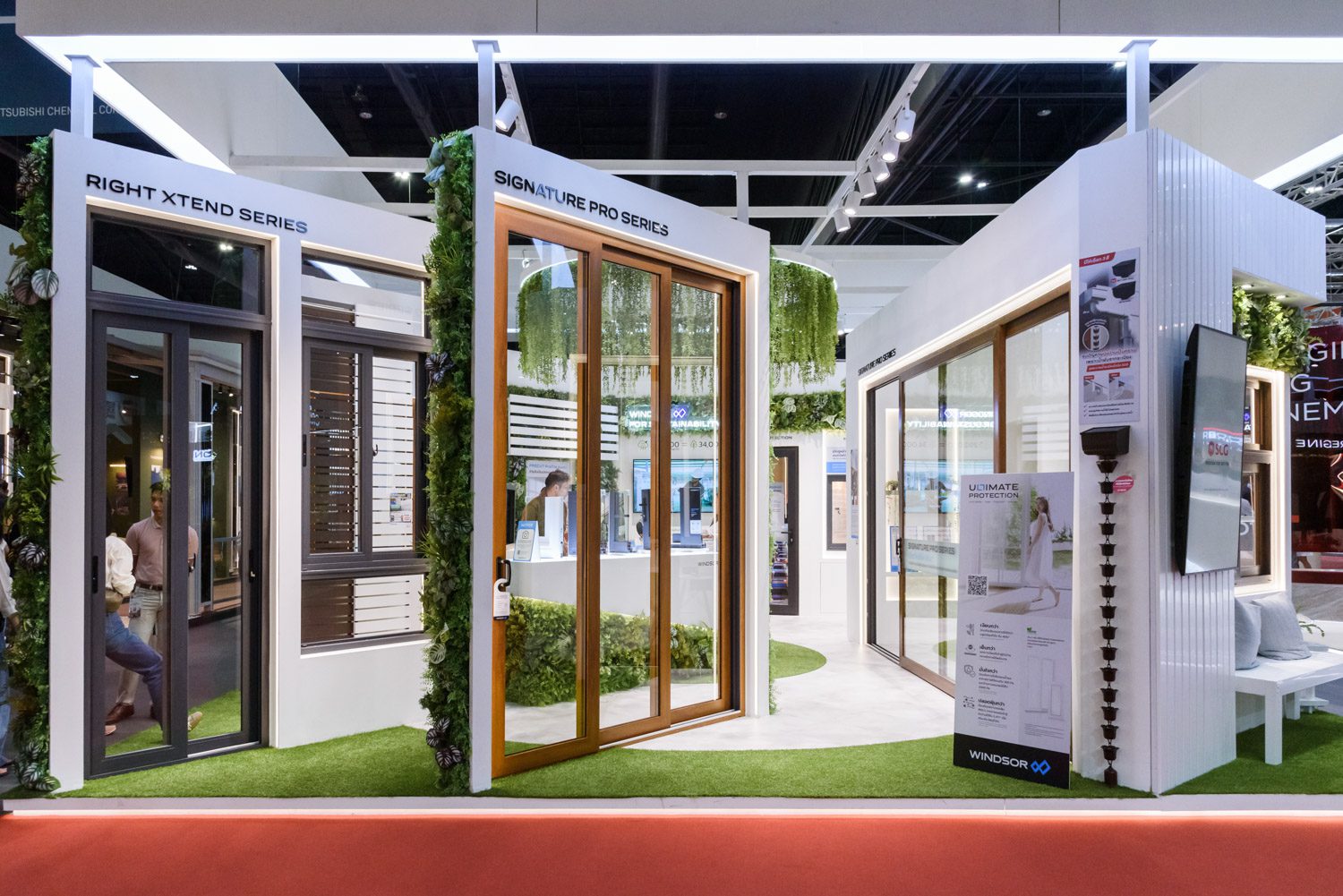 WINDSOR ยกผลิตภัณฑ์ชูโรงมาให้ชื่นชมกันอย่างเต็มที่ อย่างเช่น สินค้าซีรีส์ SIGNATURE PRO ที่ทำบานได้กว้างถึง 5.6 เมตร และสูงถึง 3 เมตร ช่วยละลายพื้นที่ภายนอกกับภายในให้เสมือนเป็นหนึ่งเดียว แถมมาพร้อมออปชันกรอบประตูหน้าต่างหลายสีสันเพื่อตอบโจทย์ไอเดียดีไซน์ที่หลากหลาย นอกจากนั้นแล้ว WINDSOR ก็มีสินค้าซีรีส์อื่นๆ อีกมากมาย เช่น ซีรีส์ SIGNATURE, RIGHT BASIC และ RIGHT XTEND ที่เปิดความเป็นไปได้แบบไร้ขีดจำกัดให้งานออกแบบ