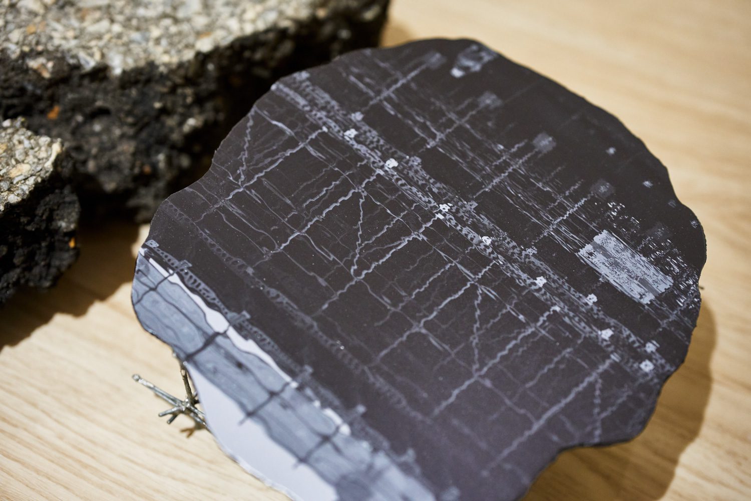 ถนนที่ชำรุด ทรุดโทรม จึงเป็นอนาคตที่ถูกชะลอไว้ เป็นเวลาซึ่งถูกเหนี่ยวรั้งไม่ให้ก้าวเดินไปข้างหน้า ในกระบวนการทำงาน ธาดาเล่นบทเป็นนักโบราณคดี ขุดค้น สำรวจตรวจลึกลงไปในชั้นผิวของถนน ก่อนจะพบข้อเท็จจริงที่ว่า การก่อสร้าง/ซ่อมถนนนั้นไม่ได้มาตรฐาน ขาดคุณภาพ เพราะใช้วัสดุไม่เหมาะสม ประกอบกับการละเลยปล่อยให้รถบรรทุกน้ำหนักเกินกำหนดสัญจรผ่านไปมา ทำให้ถนนเสื่อมสภาพอย่างจงใจ จากนั้นจึงถูกซ่อมเพียงเพื่อจะซ่อมซ้ำแล้วซ้ำอีก ผลาญเผางบประมาณ แทนที่จะใช้ไปกับการพัฒนาต่อยอดในส่วนอื่น เพื่อถางทางไปยังอนาคต ธาดาหล่อหลอมจับเอาเวลาที่สาบสูญกว่าเกือบ 70 ปีปั้นออกมาเป็นก้อนยางมะตอยกับแอ่งน้ำขัง ชวนให้ผู้ชมใคร่ครวญถึงการพัฒนาที่ขยับ เคลื่อนไหว แต่กลับอยู่ที่เดิม ชั้นผิวของถนนซึ่งทับถมกันแต่ละชั้น เป็นดั่งเส้นเวลาที่ถูกแช่แข็งซ้อนกันเป็นชั้นสูงขึ้นไป เปรียบเสมือนการพัฒนาในแนวดิ่ง ไม่ได้ยืดยาวลากเป็นเส้นตรงแนวราบต่อขยายออกไปในอนาคต