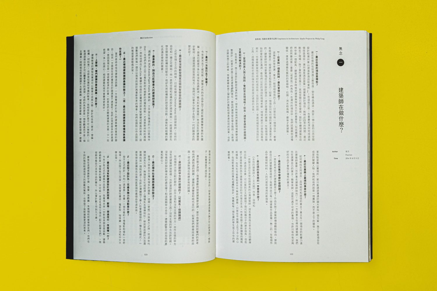 ข้อความข้างต้นเป็นส่วนหนึ่งในคำนำของหนังสือ Emptiness in Architecture หนังสือสองภาษา (จีนและอังกฤษ) ที่จัดพิมพ์โดย Garden City Publishers (田園城市生活風格書店) จากไต้หวัน ซึ่งรวบรวมผลงานจากการทำงานกว่า 20 ปีของ Philip Fung (馮國安) สถาปนิกชาวฮ่องกงผู้ก่อตั้งบริษัทสถาปนิก Elsedesign ในไต้หวัน ทั้งยังเคยมีประสบการณ์ในการทำงานกับ Herzog & de Meuron ซึ่งปัจจุบันเขาเองยังเป็นผู้ช่วยศาสตราจารย์ในภาควิชาสถาปัตยกรรมศาสตร์ของมหาวิทยาลัยตงไห่ (Tunghai University) ในไต้หวัน ซึ่งหนังสือเล่มนี้จะทำการเล่าเรื่องการออกแบบสถาปัตยกรรมและเฟอร์นิเจอร์ของ Philip Fung ในแต่ละโปรเจกต์ ผ่านเนื้อหา 6 บท ได้แก่ Duality, Formless, Complexity, Livelihood, Ideology และปิดท้ายด้วยบท Reflection