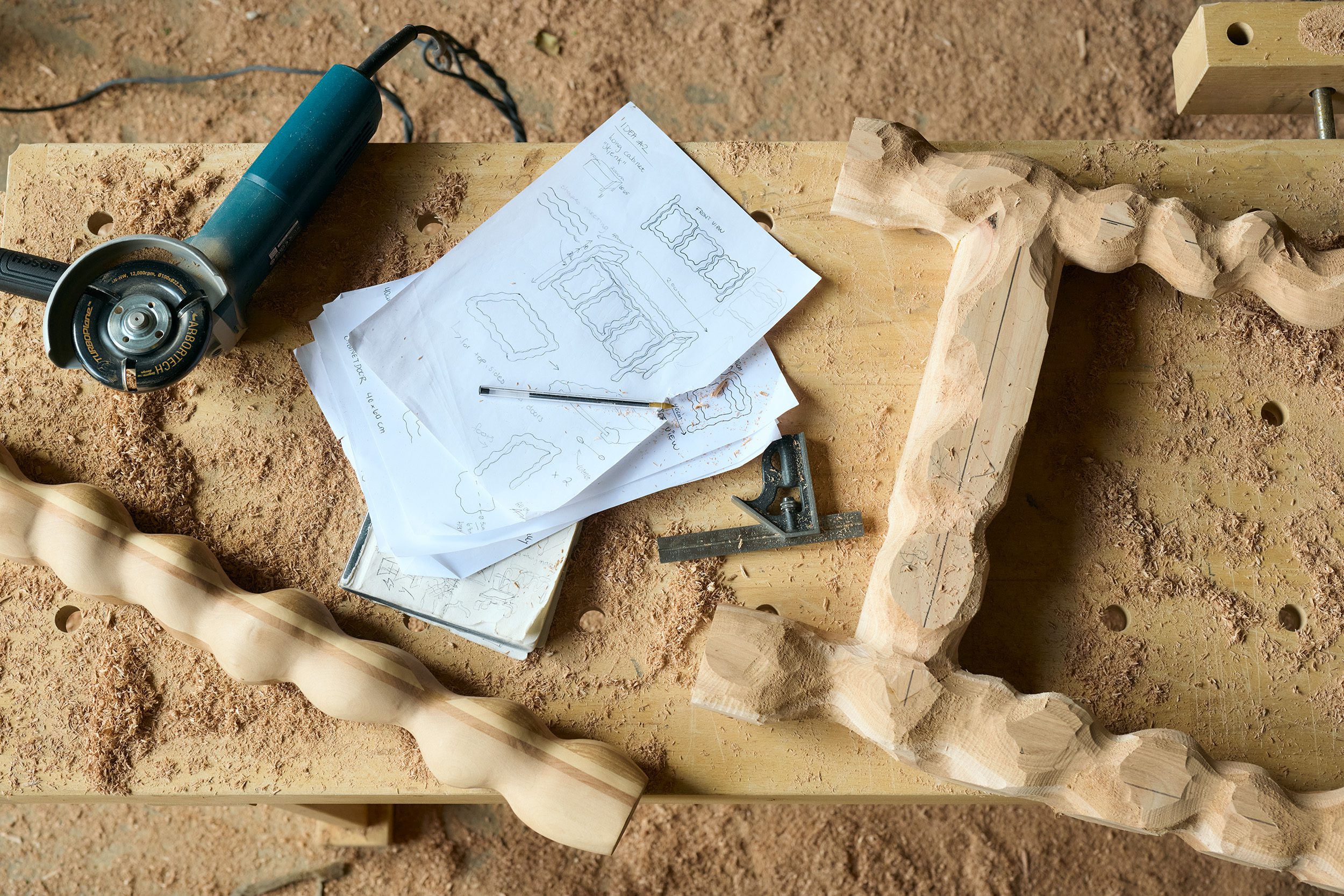 องค์ประกอบที่ราวกับงานประติมากรรมตัดกับพื้นผิวที่สะอาดเรียบร้อยและมีสีอ่อนของพาร์ทหน้าตู้ ท็อปโต๊ะ ที่นั่ง และพนักพิง บทสนทนาที่เกิดขึ้นระหว่างรูปลักษณ์ที่เรียบง่ายกับสุดขั้วนี้ได้ขับเน้นความสวยงามและความอเนกประสงค์ของไม้ No.1C ทั้งยังช่วยยกระดับคุณค่าของมันผ่านฝีมือและการออกแบบที่ใส่ใจ