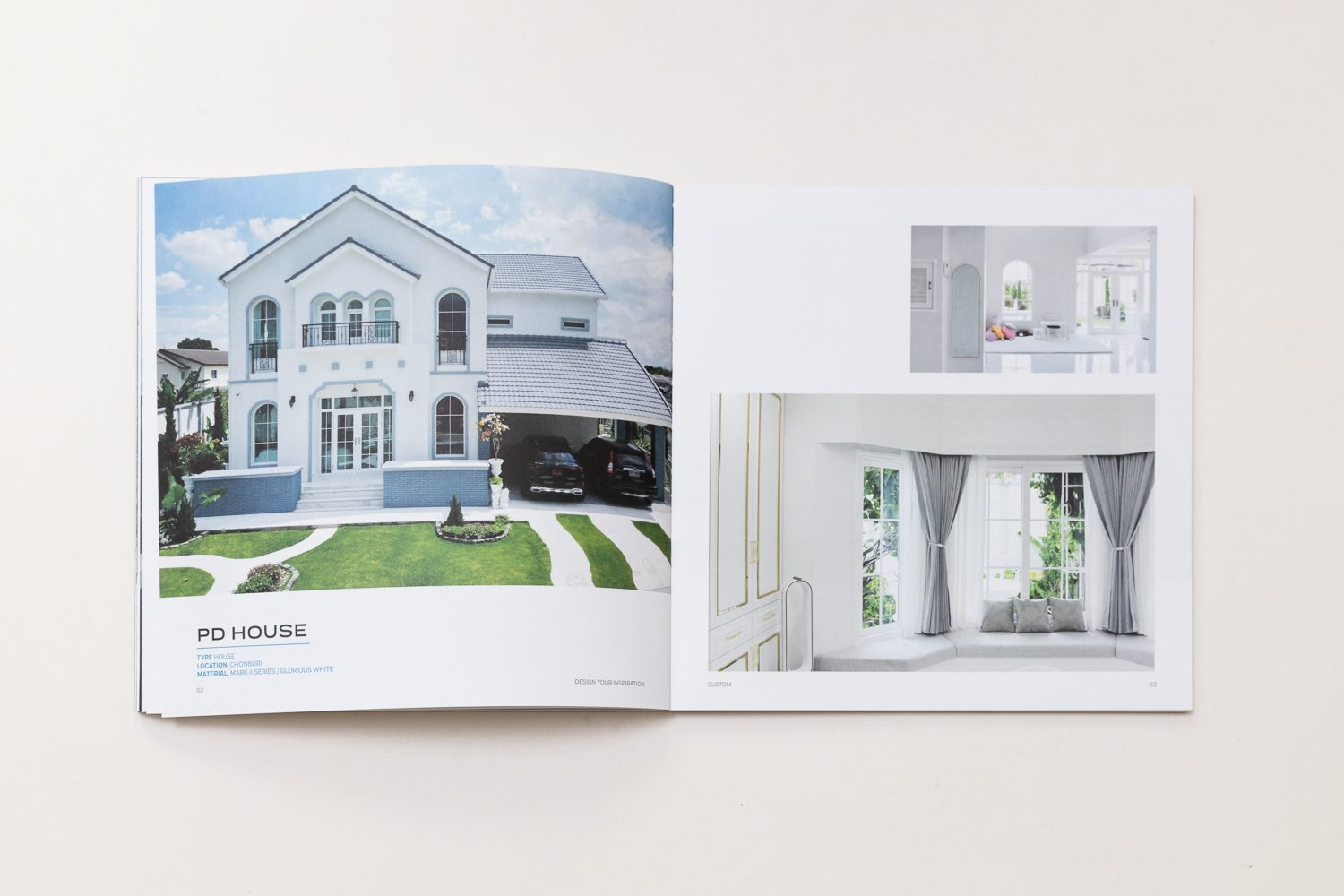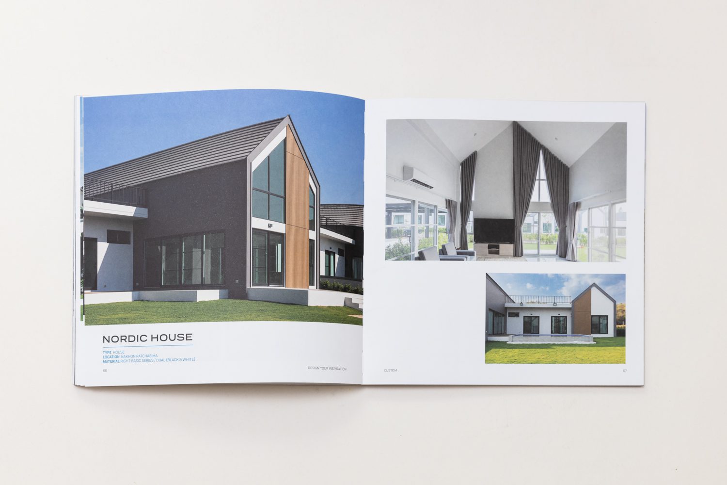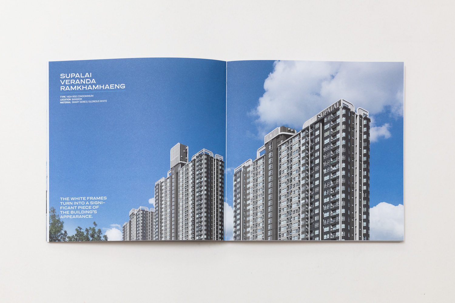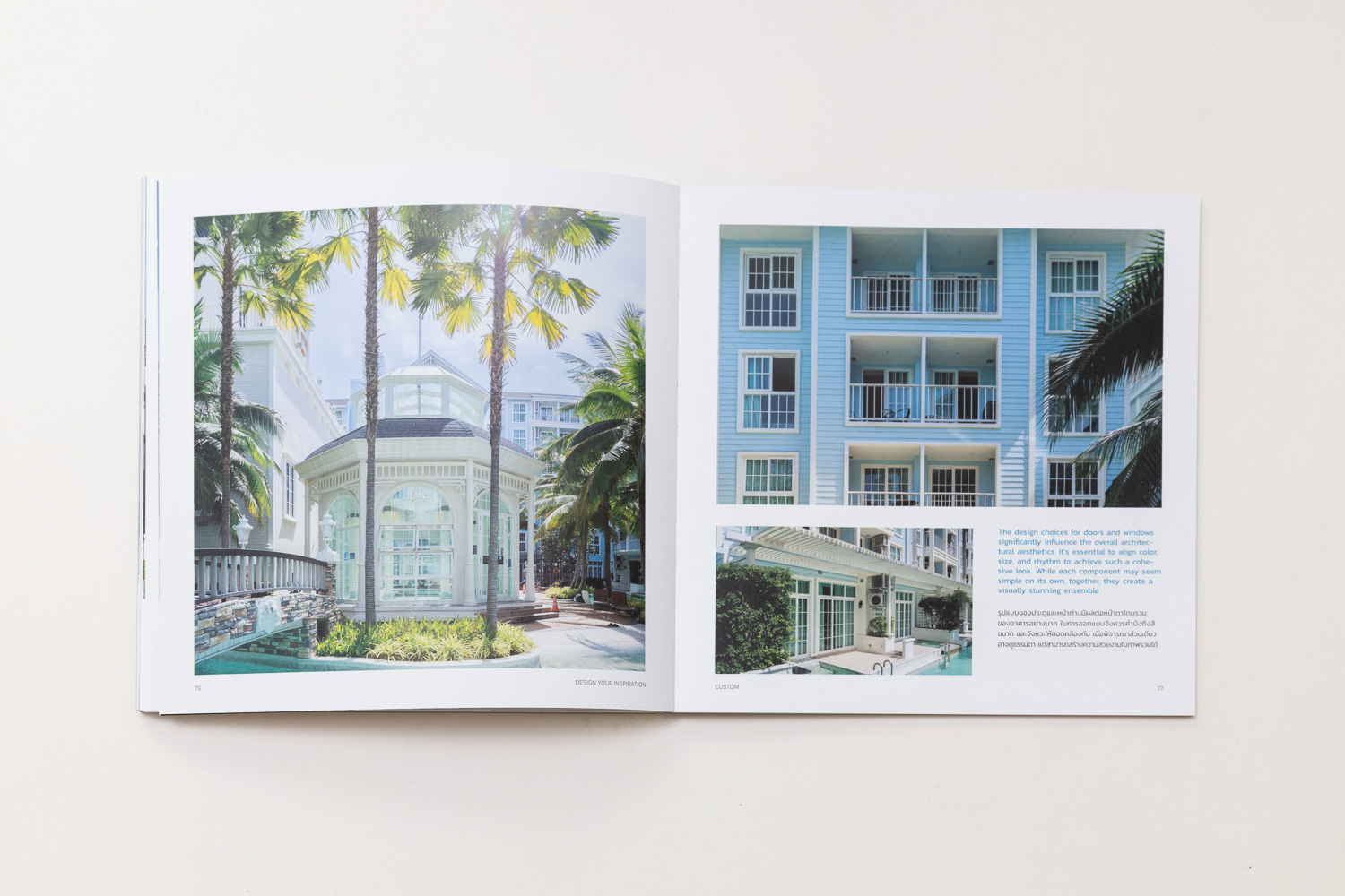 WINDSOR เปิดให้ผู้อ่านท่องไปในสเปซที่เกิดขึ้นมากกว่าการใช้ถ้อยคำบรรยาย มุมมองภายในเล่มก็มีทั้งภายในและภายนอก ให้ทุกคนได้ลองสำรวจว่าประตูหน้าต่างส่งผลต่อรูปลักษณ์ของอาคารอย่างไรบ้าง ทั้งด้านวัสดุ สัดส่วน และการเลือกใช้สี ซึ่ง WINDSOR ก็มีสีมาตรฐานอย่างสีขาว สีเทา และสีดำ นอกจากนี้ยังมีสีทีค (Amber Teak) และสีวอลนัท (Dark Walnut) ที่มีผิวสัมผัสราวกับไม้จริงด้วยเทคโนโลยีฟิล์มลามิเนตจากเยอรมนีด้วย