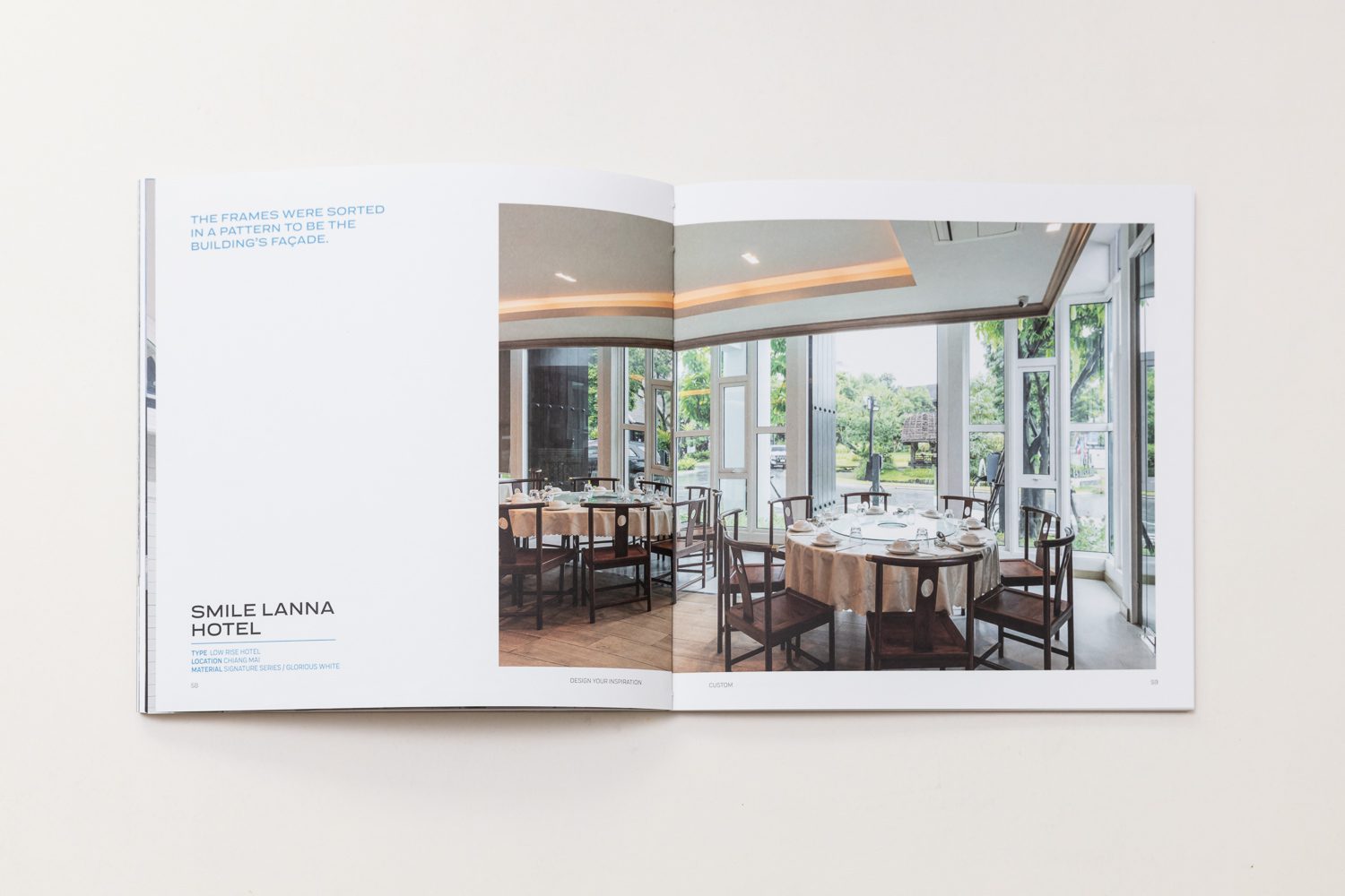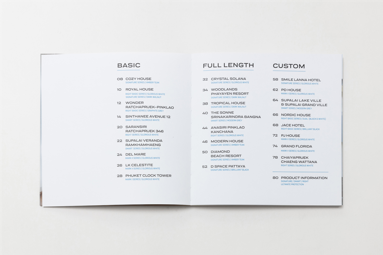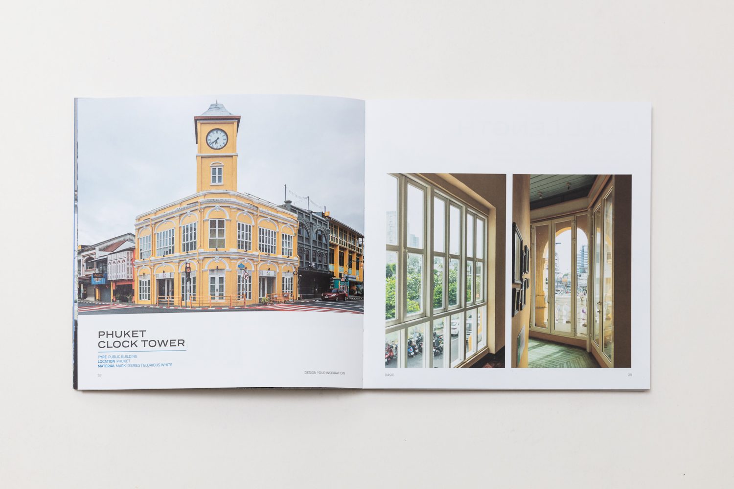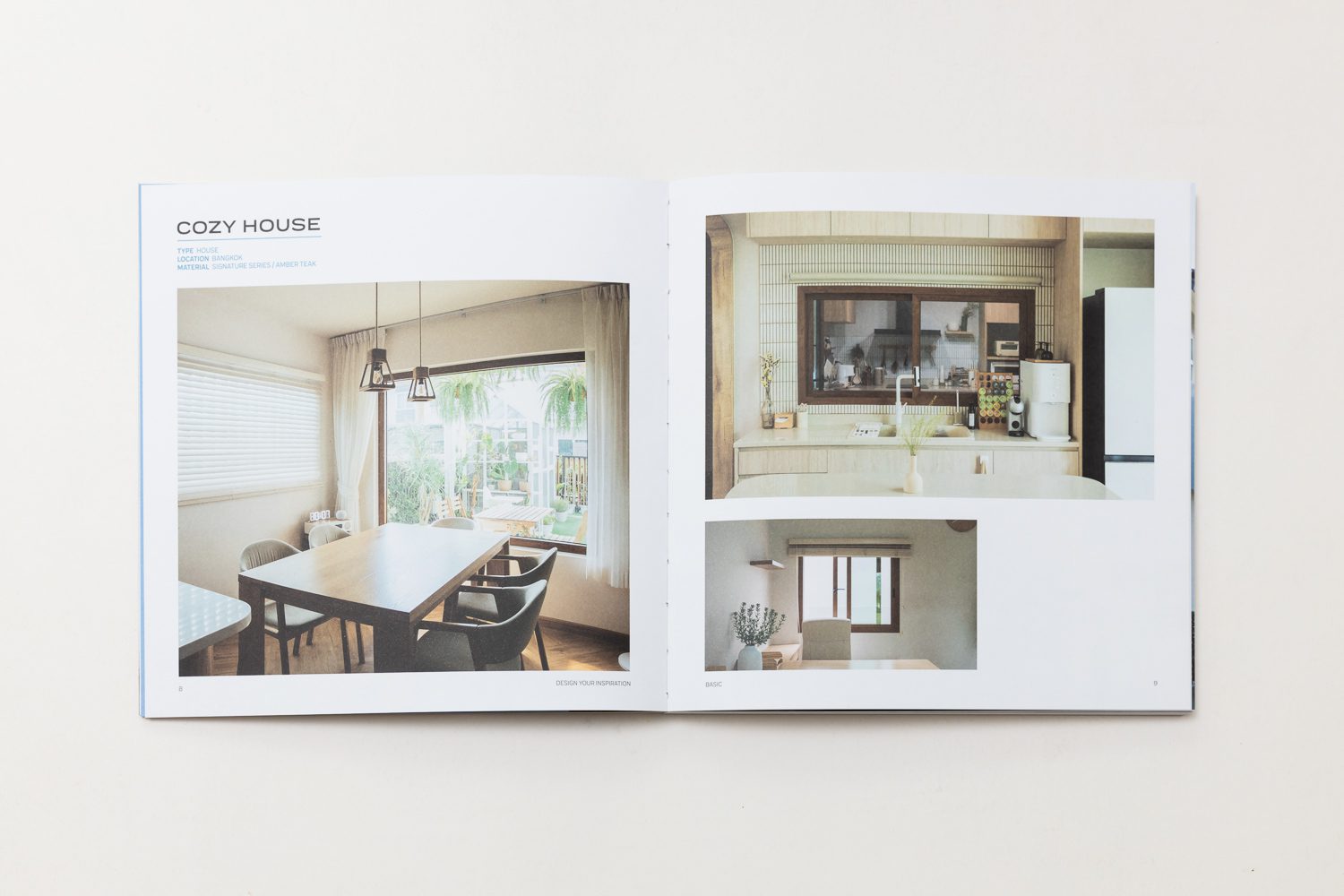WINDSOR เปิดให้ผู้อ่านท่องไปในสเปซที่เกิดขึ้นมากกว่าการใช้ถ้อยคำบรรยาย มุมมองภายในเล่มก็มีทั้งภายในและภายนอก ให้ทุกคนได้ลองสำรวจว่าประตูหน้าต่างส่งผลต่อรูปลักษณ์ของอาคารอย่างไรบ้าง ทั้งด้านวัสดุ สัดส่วน และการเลือกใช้สี ซึ่ง WINDSOR ก็มีสีมาตรฐานอย่างสีขาว สีเทา และสีดำ นอกจากนี้ยังมีสีทีค (Amber Teak) และสีวอลนัท (Dark Walnut) ที่มีผิวสัมผัสราวกับไม้จริงด้วยเทคโนโลยีฟิล์มลามิเนตจากเยอรมนีด้วย