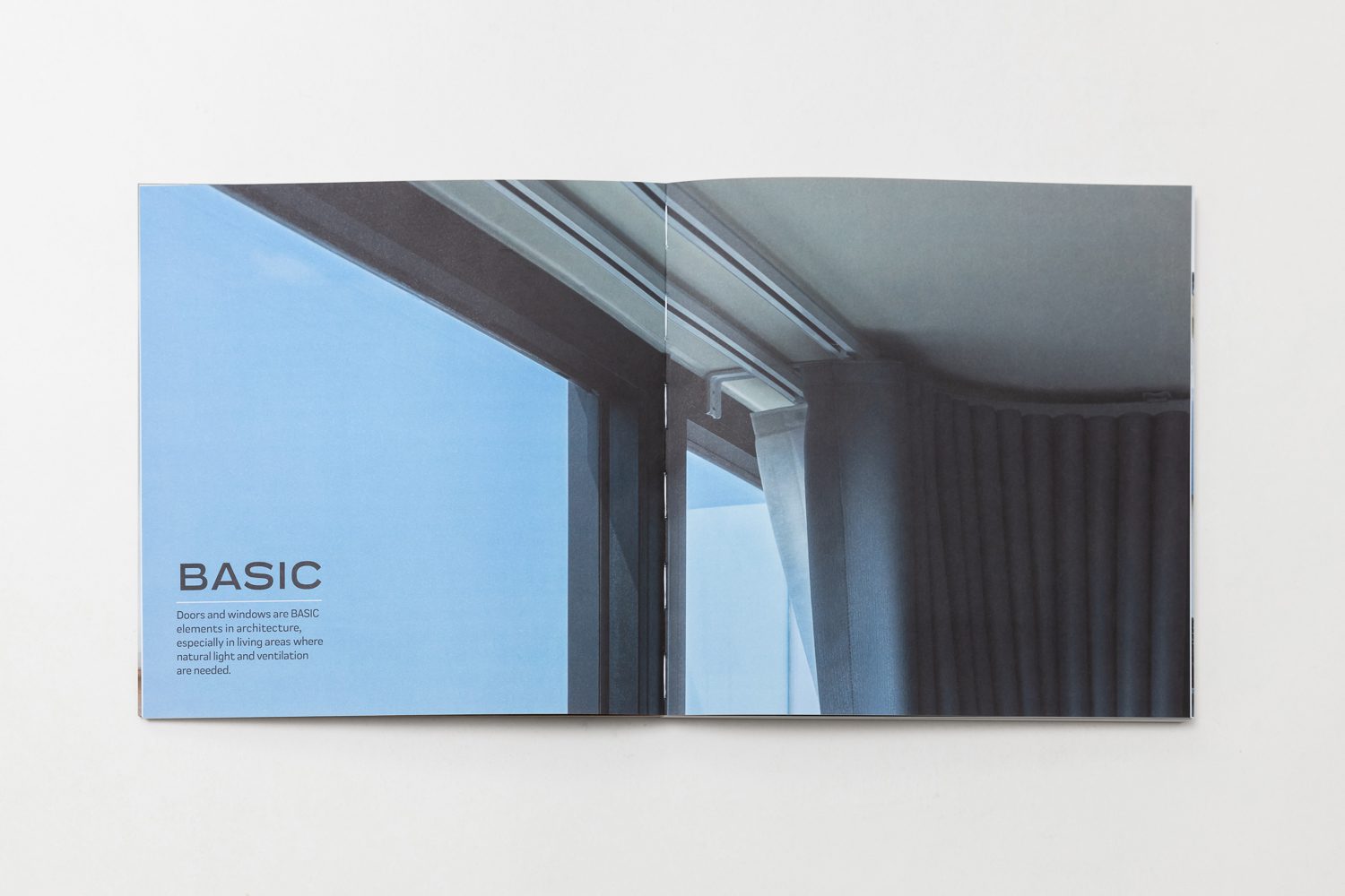 หนังสือเล่มนี้แบ่งออกเป็น 3 บท ได้แก่ BASIC, FULL LENGTH และ CUSTOM โดยทุกบทเป็นการนำเสนอรูปแบบการใช้งานที่แตกต่างกันผ่านภาพถ่าย และไม่ได้แบ่งเนื้อหาตามรุ่นผลิตภัณฑ์ตามขนบของแคตตาล็อก เริ่มต้นด้วย BASIC ที่รวบรวมไอเดียการใช้งานประตูหน้าต่างที่พบเห็นได้ทั่วไป FULL LENGTH สำหรับคนที่มองหากรอบประตูหน้าต่างเพื่อเปิดทิวทัศน์กว้างขวางให้กับพื้นที่ภายใน ปิดท้ายด้วย CUSTOM ที่นักออกแบบสามารถออกแบบรูปร่างเพื่อให้เข้ากับสไตล์ของอาคาร ซึ่งก็มีทั้งเรื่องการแบ่งจังหวะและรูปร่าง เช่น ทรงโค้งหรือปลายแหลมล้อไปกับหลังคา เป็นต้น โดยประตูหน้าต่าง WINDSOR ทุกซีรีส์สามารถเลือกสั่งผลิตให้มีขนาดและดีไซน์ตรงกับความต้องการได้