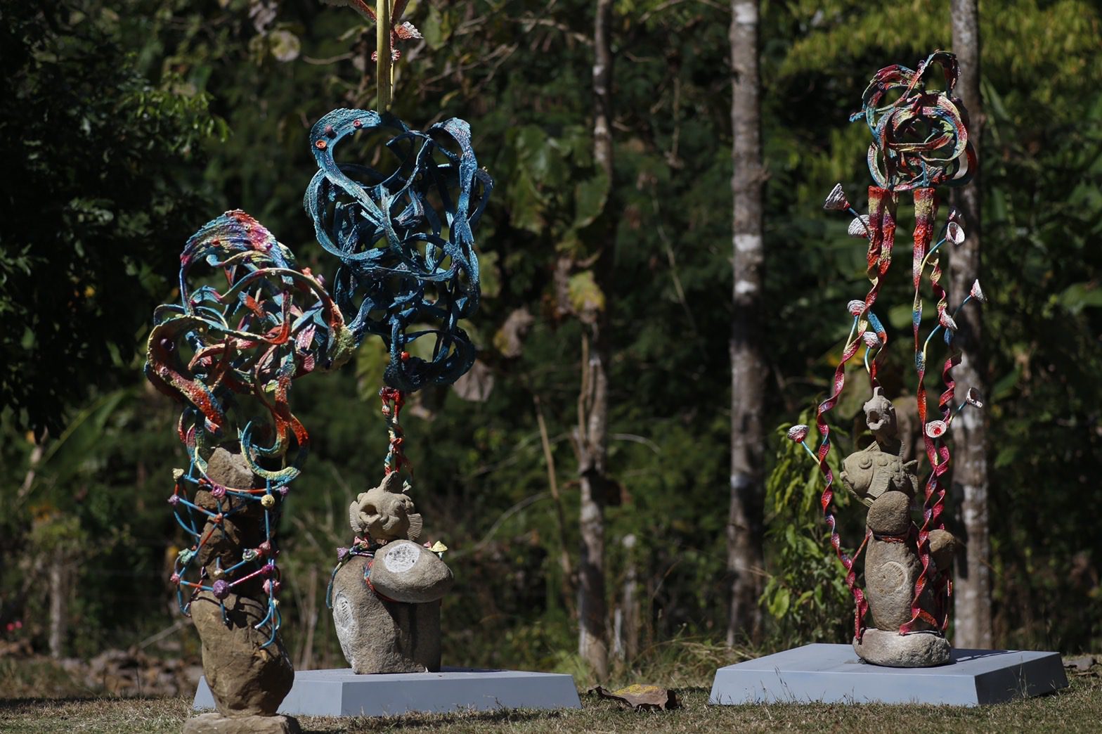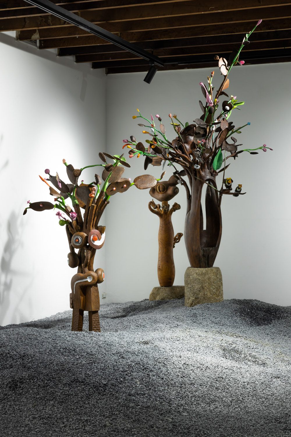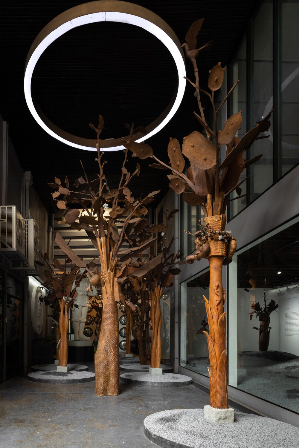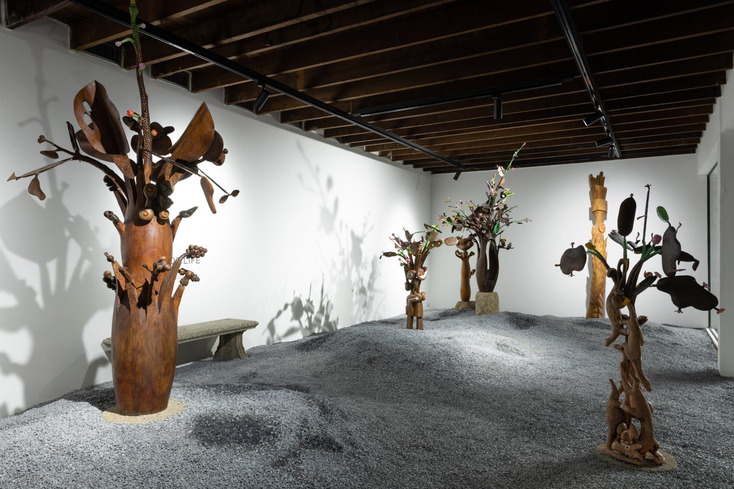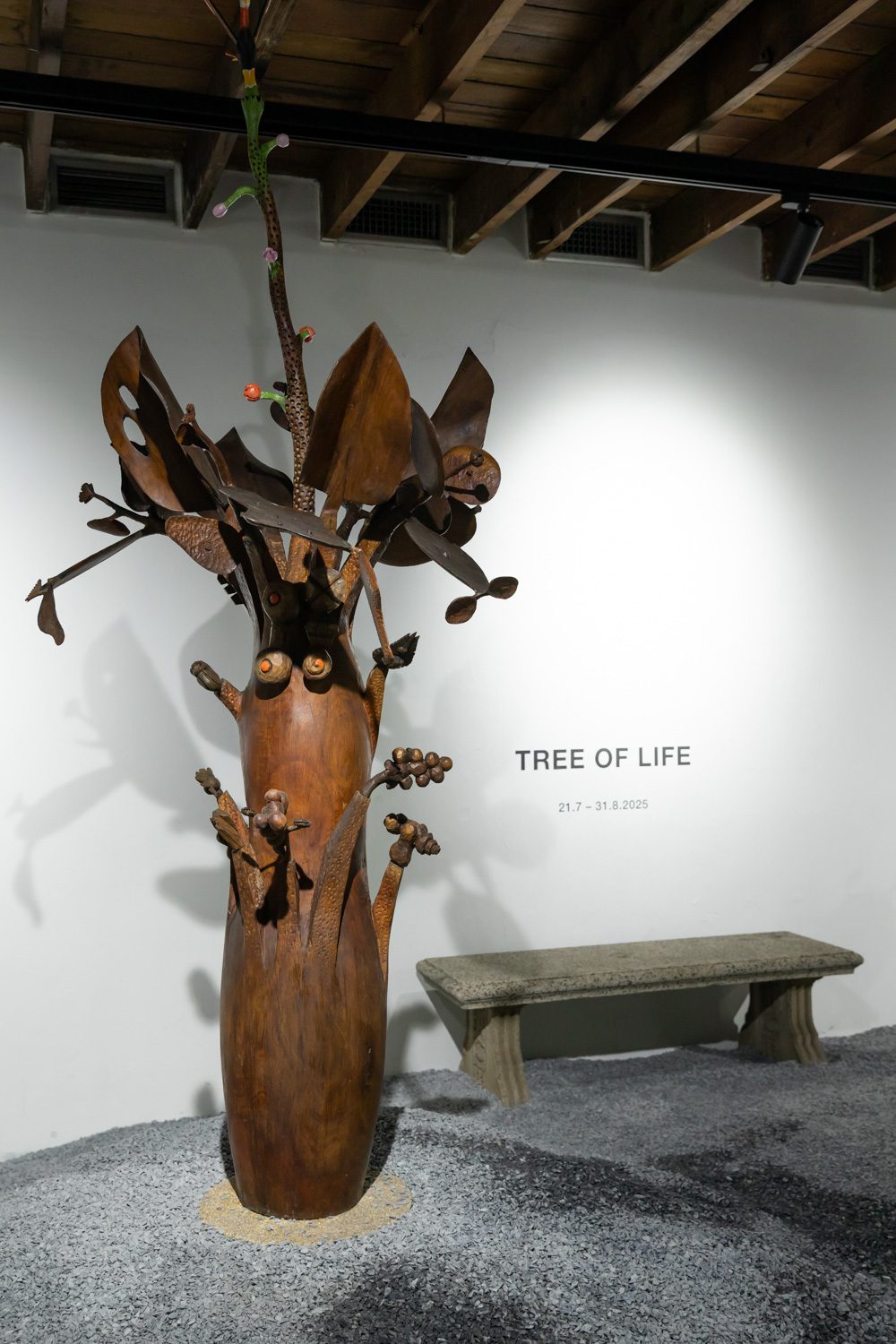 art4d: กลับมาถึงนิทรรศการ ‘Tree of Life’ กันบ้าง มันคือประติมากรรมที่เป็นต้นไม้ แล้วก็ผมรู้สึกว่ามันมีความเป็นชนบทมากเลย มันมีวัฒนธรรมท้องถิ่น มีความแห้งแล้วบางอย่าง รวมถึงบรรยากาศของประเพณีพื้นบ้านที่ชัดมากๆ ทั้งหมดนี้ตั้งใจจะสื่ออะไร
