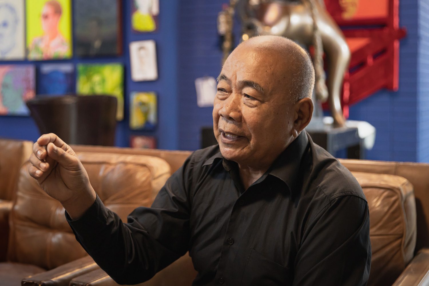 PD: ศิลปะปัจจุบันมันหลากหลาย จริงๆ ผมชื่นชมมากนะ แล้วก็ตอนนี้ศิลปะมีความสำคัญกับชุมชนและทุกคนรู้สึกว่าศิลปะนี้เป็นส่วนหนึ่งของชีวิตแล้ว เมื่อก่อนเขาไม่ค่อยรู้สึกแต่โลกมันพัฒนาขึ้น ศิลปะ ศิลปิน ก็มีหลายวัย ศิลปะของเด็กเจเนเรชั่นใหม่ก็มีการแสดงออกแนวคิดอะไรของเขา ตามสิ่งที่มันเกิดขึ้นในสิ่งแวดล้อมเขา ส่วนคนแก่ก็ต้องทำงานต่อไป ผมว่าดีนะที่มีทั้งคนแก่ทั้งคนจวนจะตายแล้วที่ยังทำงาน คนยังแข็งแรงปานกลางก็ยังทำงานอยู่ แล้วเด็กก็ทำงานหลากหลายมากขึ้น ผู้ชมที่จะชื่นชมศิลปะก็ได้เห็นศิลปะที่หลากหลายทางเลือกขึ้น