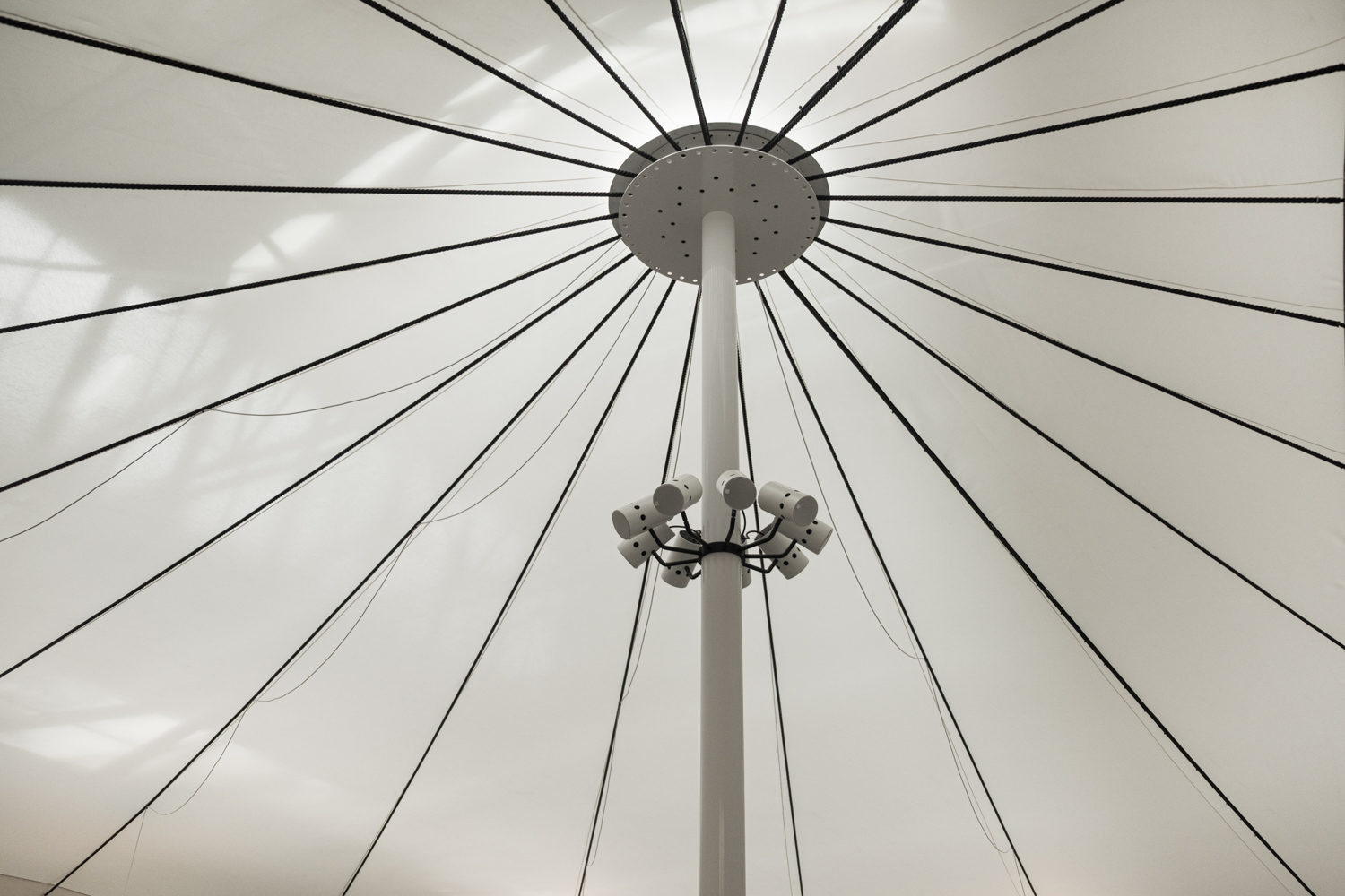 พาวิลเลียนของลักเซมเบิร์ก Sonic Investigations ขยับการรับรู้สถาปัตยกรรมออกจากการพึ่งพาสายตาไปสู่การดื่มด่ำผ่านเสียง ด้วยการใช้ ‘แผนที่เสียง’ (acoustic cartographies) และการบันทึกบรรยากาศเสียงภาคสนาม ทีมภัณฑารักษ์ Mike Fritsch, Alice Loumeau และ Valentin Bansac เปิดพื้นที่ให้สำรวจมิติทางโสตของ ยุคแอนโทรโปซีน (Anthropocene) (ยุคทางธรณีวิทยาที่มนุษย์มีอิทธิพลต่อโลกอย่างมีนัยสำคัญ) ผลงานนี้ไม่เพียงนำเสนอวิธีการรับรู้พื้นที่แบบใหม่ แต่ยังปลูกฝัง ‘จริยธรรมของการฟัง’ (ethic of listening) ที่ไวต่อจังหวะของสิ่งแวดล้อม ความเงียบ และเสียงรบกวน