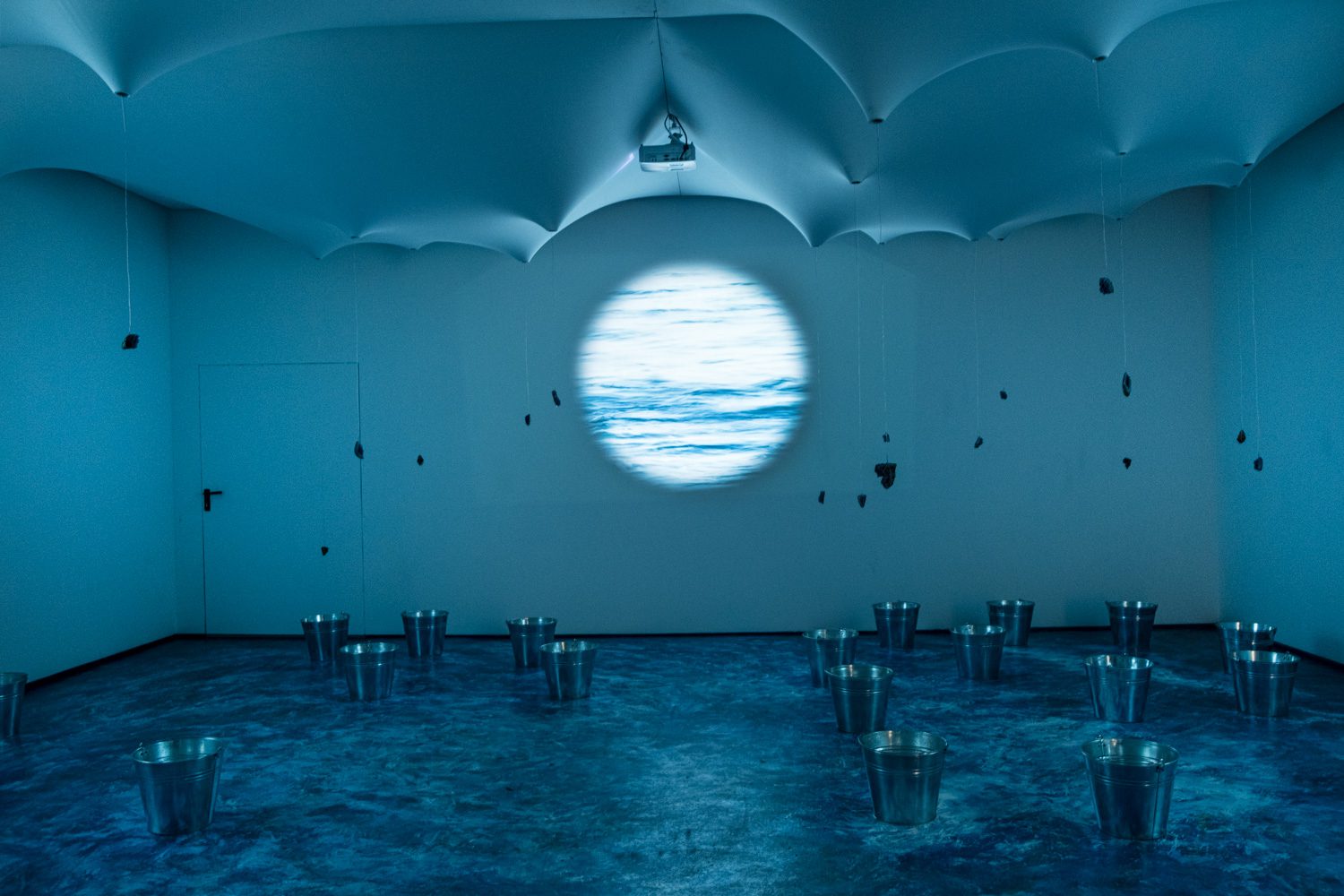 พาวิลเลียนของอุรุกวัย 53.86%: Land of Water นำเสนออัตลักษณ์ทางทะเลของประเทศผ่านมุมมองของ ไฮโดรซีน (Hydrocene) ยุคที่นิยามขึ้นจากการเมืองของน้ำ (Politics of Water) ภัณฑารักษ์ Katia, Ken และ Luis Sei Fong สร้างนิทรรศการนี้ผ่านการใช้เสียง หยดน้ำแขวนลอย และการฉายภาพเล่าเรื่องเพื่อถ่ายทอดทั้งความหมายเชิงอุปมาและมิติด้านโครงสร้างพื้นฐานของน้ำ ผลงานนี้ชวนให้ผู้ชมขบคิดว่าน้ำมีบทบาทอย่างไรในการกำหนดภาพจินตนาการของเมือง เส้นเขตแดนของรัฐชาติ และอนาคตทางนิเวศ