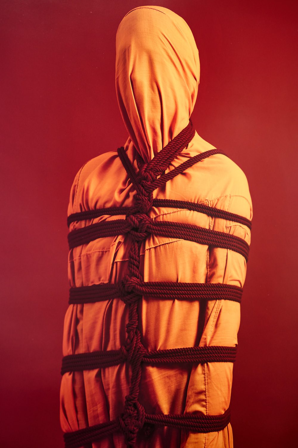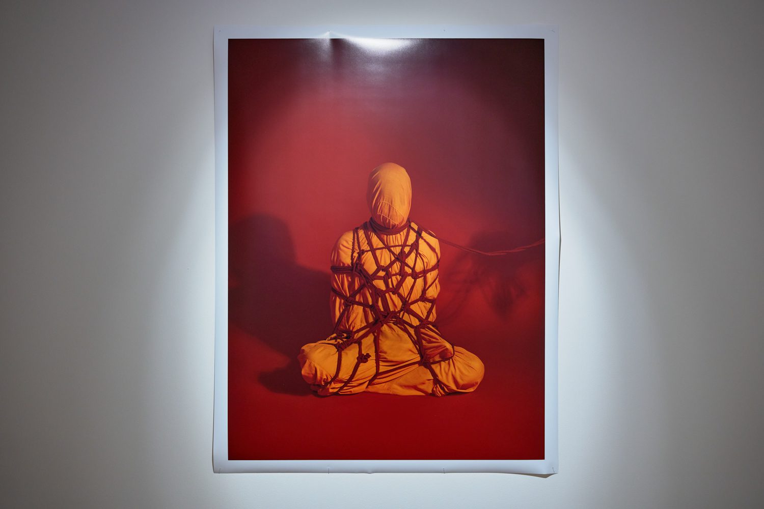 เมื่อภาพของร่างห่มคลุมจีวรที่ถูกผูกชิบาริจัดวางอยู่ในห้องเดียวกับพนักงานใกล้เกษียณที่มีน้ำกามเปื้อนหน้า ความหมายที่เคยดูตายตัวมั่นคงก็ถูกรื้อถาม ในโลกความเป็นจริงแล้ว อาจจะไม่จำเป็นที่จะต้องรอให้สงฆ์มัดเชือกเล่นกาม เพราะเพียงแค่ภิกษุทำ ‘น้ำอสุจิเคลื่อน’ ก็นับว่าเป็นสิ่งที่ผิดจำต้องอาบัติสังฆาทิเสสแล้ว5 ‘น้ำอสุจิ’ ในที่หนึ่งจึงเป็นเรื่องต้องห้าม ห้ามแม้กระทั่งเคลื่อนไหล เป็นกิจที่เปื้อนไปด้วยบาป แต่ในอีกที่กลับเป็นตัวแทนของพลังชีวิต เป็นเรื่องของความปีติ เป็นน้ำอมฤตที่แยกไม่ขาดจากการก่อกำเนิด เป็นภาวะธรรมชาติของกายภาพที่เราไม่อาจหลีกหนีได้ งานของไมเคิลจึงชี้ให้เห็นถึงความอิหลักอิเหลื่อของความหมาย เราควรยอมรับยินดี กดทับ หรือผลักไสมันดี หรือทั้งหมดนี้เป็นเรื่องของบริบทที่พยายามเข้ามาแยกชั้นจัดระเบียบให้สิ่งๆ หนึ่งเกิด ‘ความต่าง’