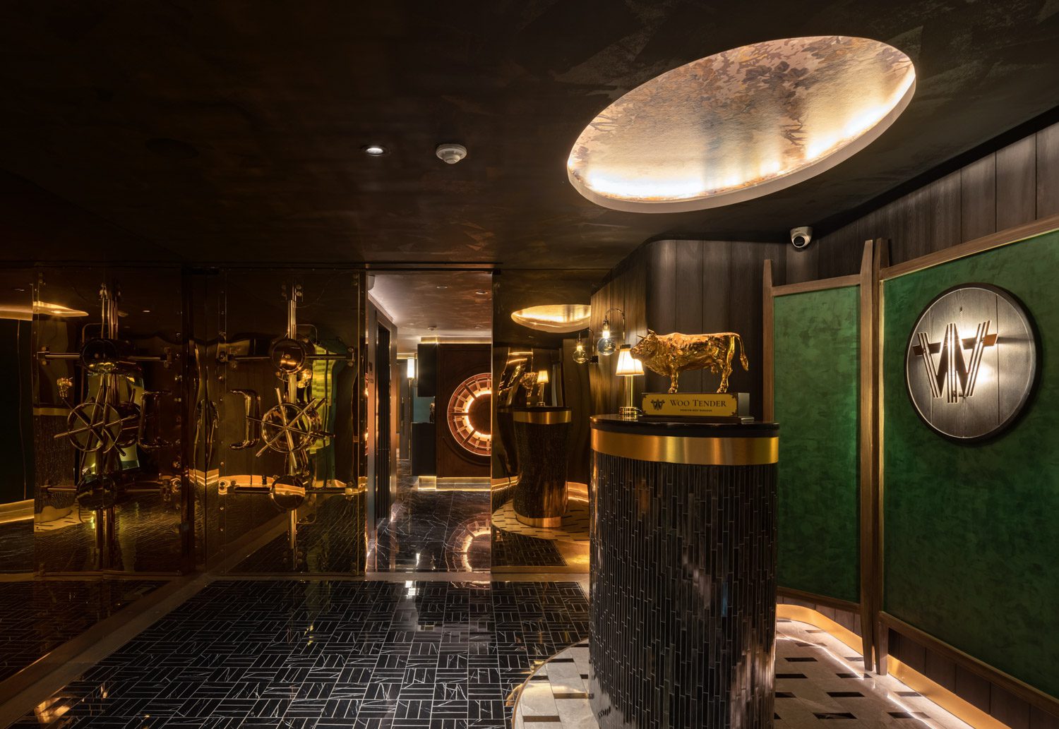 WT: อันนี้เป็นเรื่องสนุกมากๆ เรามีโอกาสออกแบบไนต์คลับที่มีขนาดใหญ่ในซอยทองหล่อ ชื่อว่า MUIN Bangkok Club เราตีความและจำลองสถาปัตยกรรมและบรรยากาศเหมือนไนต์คลับในประเทศเกาหลี โดยภายในคลับจะเป็นโซน 3 โซนทั้งเพลงฮิปฮอป เฮาส์และอิเล็กทรอนิกส์แดนซ์ เราใช้คอนเซ็ปต์ของความเป็นเกาหลีมาผสมเข้ากับความเป็นไทยในหลายส่วน อย่างการแบ่งพื้นที่ให้เป็นพื้นที่ส่วนกลางแต่มีสเตปโดยรอบในแต่ละโซน เราเจอความท้าทายในโซนฮิปฮอปที่มีเสาโครงการขนาดใหญ่ เราเลยจำลองต้นสนที่เป็นต้นไม้ประจำของที่เกาหลี และกระเบื้องบนกำแพง ถอดรูปทรงมาทำเป็นตัวประติมากรรมดีไซน์ของเสาขึ้นมา โดยห้อยแก้วแชมเปญที่คว่ำลง เหมือนการชนหมดแก้ว และในการออกแบบพื้นที่ที่ให้ความสำคัญกับเรื่องเสียงดนตรีจำเป็นจะต้องมีวัสดุซับเสียงไม่ให้เกิดเสียงสะท้อนและไม่ให้เสียงดังออกไปรบกวนบริเวณโดยรอบ เพื่อสร้างบรรยากาศสนุกๆ ภายในไนต์คลับ