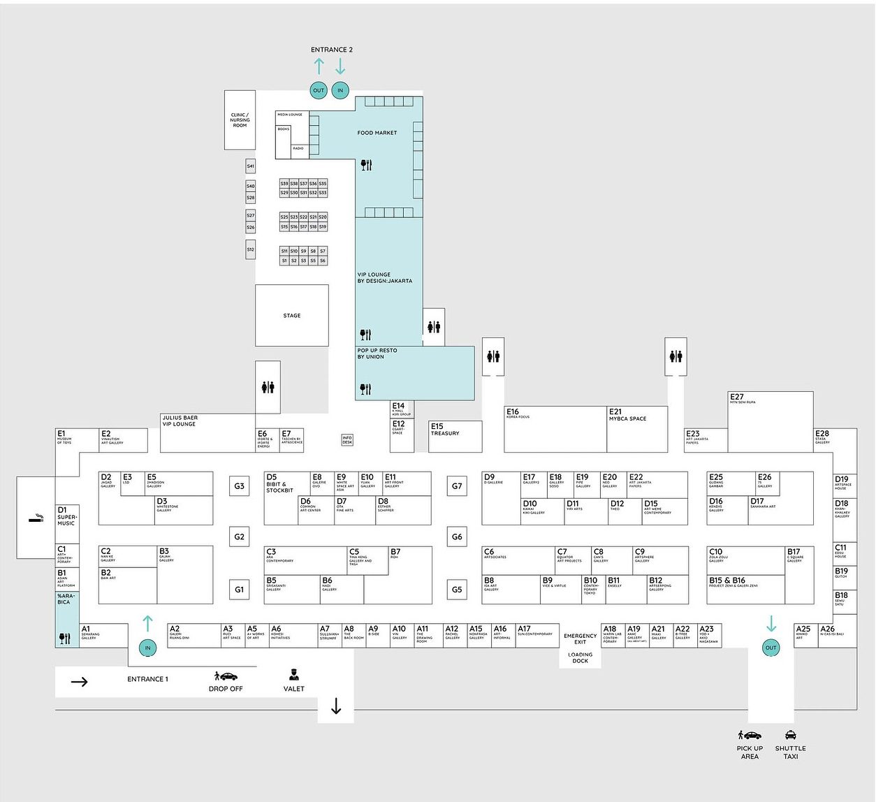 Galleries: พื้นที่รวบรวมศิลปินจากแกลเลอรีทั้ง 75 แห่งใน 16 ประเทศ เช่น เจ้าภาพอย่างอินโดนีเซีย, มาเลเซีย, สิงคโปร์, เกาหลีใต้, ญี่ปุ่น และแกลเลอรีจากประเทศไทยก็เข้าร่วมด้วย คือ Warin Lab Contemporary