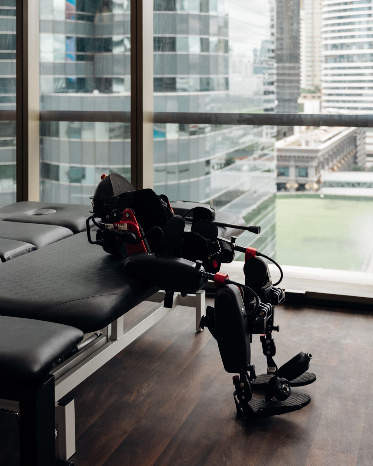 สองก็คือว่า ผู้ป่วยที่รับบริการกับเราใน penthouse จะต้องมาเจอกับเราบ่อย เช่น ผู้ป่วยที่เป็นภาวะเส้นเลือดในสมอง, โรคพาร์กินสัน หรือโรคความจำเสื่อม ซึ่งจำเป็นต้องมีการฝึกแบบเข้มข้น เขาอาจจะต้องมาอยู่กับเราสี่ชั่วโมงต่อวัน ห้าวันต่อสัปดาห์ เราก็อยากให้เขาได้รู้สึกว่าที่นี่ก็ให้ความรู้สึกสบายตัว ไม่ได้จะต้องผ่านหลายเลเยอร์ เจอคนหลายคน แค่มาถึงหน้าคลินิกของเรา นั่งลง ขั้นตอนต่อไปก็ฝึกเลย ด้วยความที่การเข้าออกง่ายแบบนี้ เราก็เลยคิดว่าอยากให้ดูเหมือนบ้านหลังที่สองของเขาที่มาได้บ่อย
