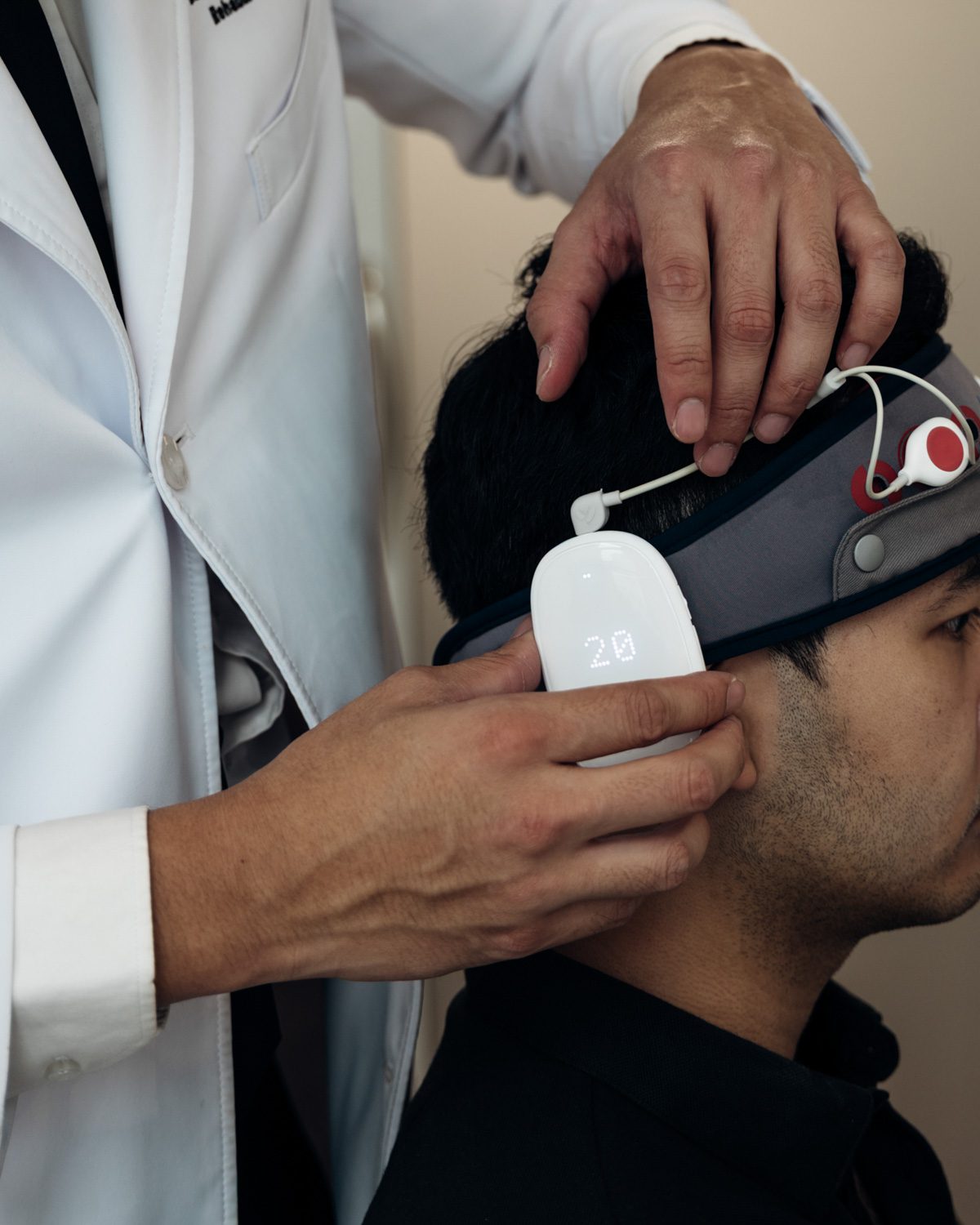 KT: มีครับ เนื่องจากว่าคนไข้ของเราเป็นบุคคลที่มีโรคเกี่ยวกับสมอง หรือเป็นผู้สูงอายุ ดังนั้นเขาไม่ได้มาคนเดียวอยู่แล้ว เพราะเขาจะมาพร้อมกับญาติหลายคน เท่ากับว่าเราต้องออกแบบพื้นที่บางส่วนเพื่อให้ ‘ผู้ดูแล’ ผู้ป่วยอยู่ด้วยเช่นกัน เราจึงออกแบบให้มีสถานที่รองรับและออกแบบมู้ดให้นั่งพักอย่างสบาย ไม่ได้มีเสียงรบกวนของเครื่องวัดสัญญาณชีพ แต่มีเพลงสบายๆ ให้ฟัง ทำให้รู้สึกไม่น่าเบื่อจนเกินไประหว่างรอคนไข้เข้าฝึกราวหนึ่งถึงสองชั่วโมงต่อวันในทุกๆ session