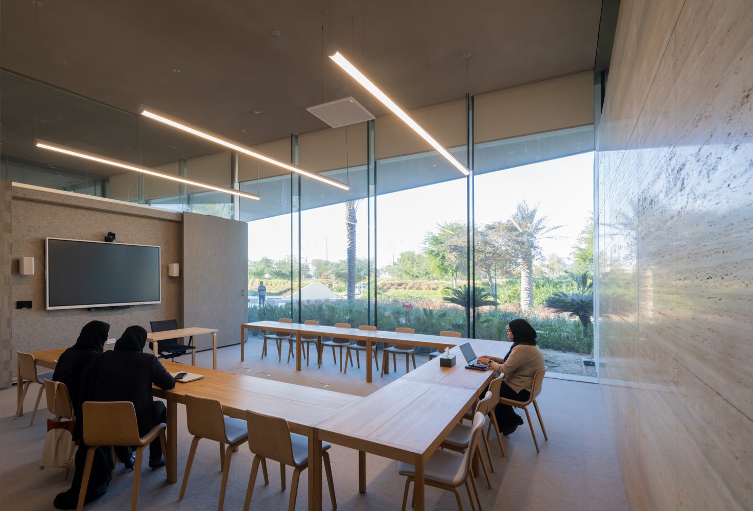 สถาปัตยกรรมของ Al-Mujadilah Center and Mosque for Women โดย Diller Scofidio + Renfro ถ่ายทอดการผสานระหว่างขนบมัสยิดแบบดั้งเดิมกับพื้นที่การเรียนรู้ร่วมสมัยสำหรับสตรีมุสลิม