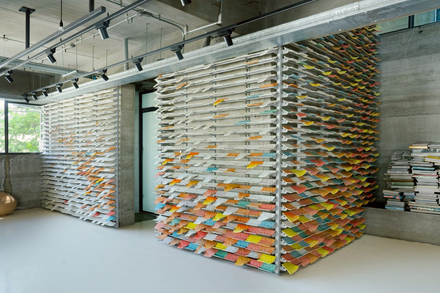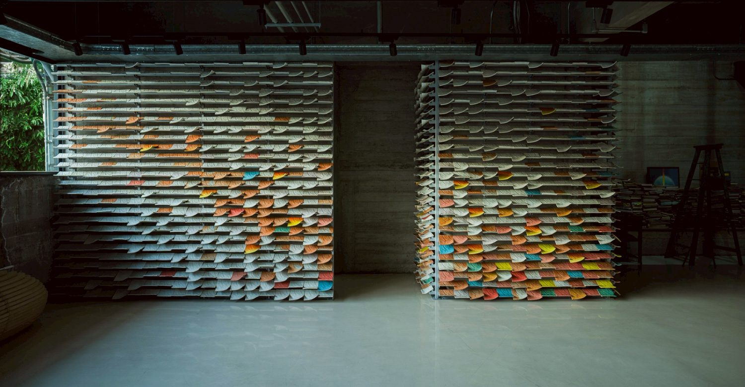 อีกโปรเจกต์หนึ่งที่แตกต่างกันอย่างสิ้นเชิงคือ Palette of Possibilities ด้วยฟังก์ชันของ ORC Friends ที่เป็น co-working space ซึ่งรายล้อมด้วยหนังสือและโพสต์อิท สีสันของกระเบื้องในงานนี้จึงมีความจัดจ้านและมีความโดดเด่นที่ตัดกับวัสดุรอบข้างที่เป็นคอนกรีตเปลือยสีเทา ทำให้กระเบื้องที่ใช้แสดงถึงความแตกต่างอย่างชัดเจนเมื่อมองใกล้ๆ แต่เมื่อถอยมากลับรวมตัวเป็นองค์ประกอบที่กลมกลืน