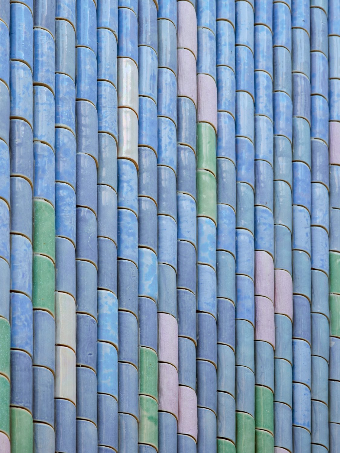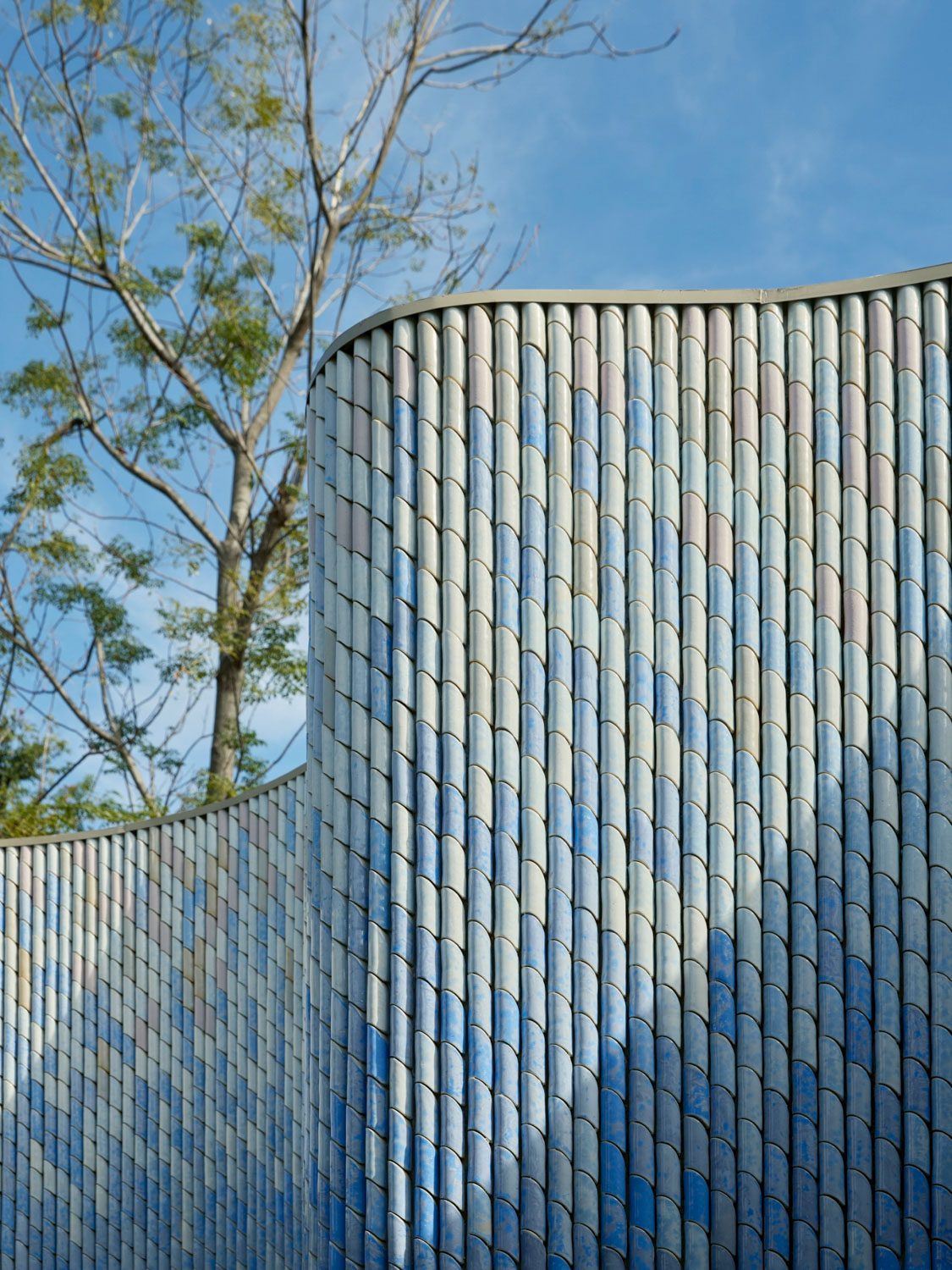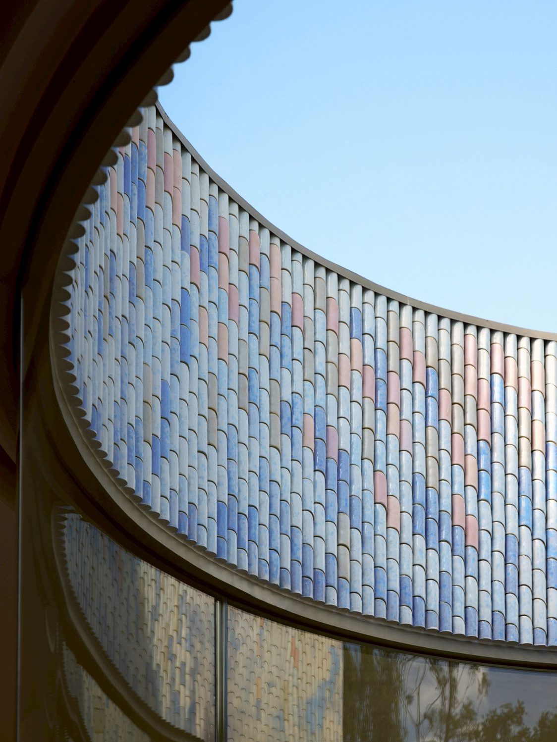 สำหรับทั้ง 3 คน การเรียงกระเบื้องไม่ได้ขึ้นอยู่กับลวดลาย หากแต่เป็นการออกแบบอารมณ์ให้อาคารด้วยเฉดสีต่างๆ จากกระเบื้องทำมือทีละชิ้น ซึ่งถูกร้อยเรียงด้วยคอมพิวเตอร์สคริปต์ โดยขั้นตอนนี้ยังเป็นตัวกำหนดหมายเลขและลำดับการติดตั้งหน้างาน เพื่อให้แน่ใจว่าแม้ผลลัพธ์สุดท้ายจะออกจากมือมนุษย์ แต่ก็มีความแม่นยำสูง