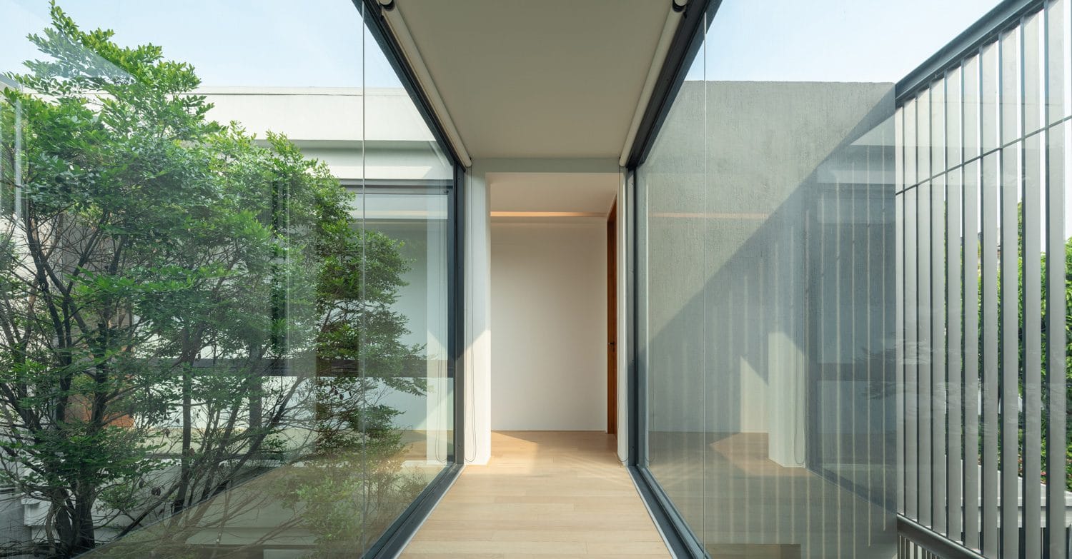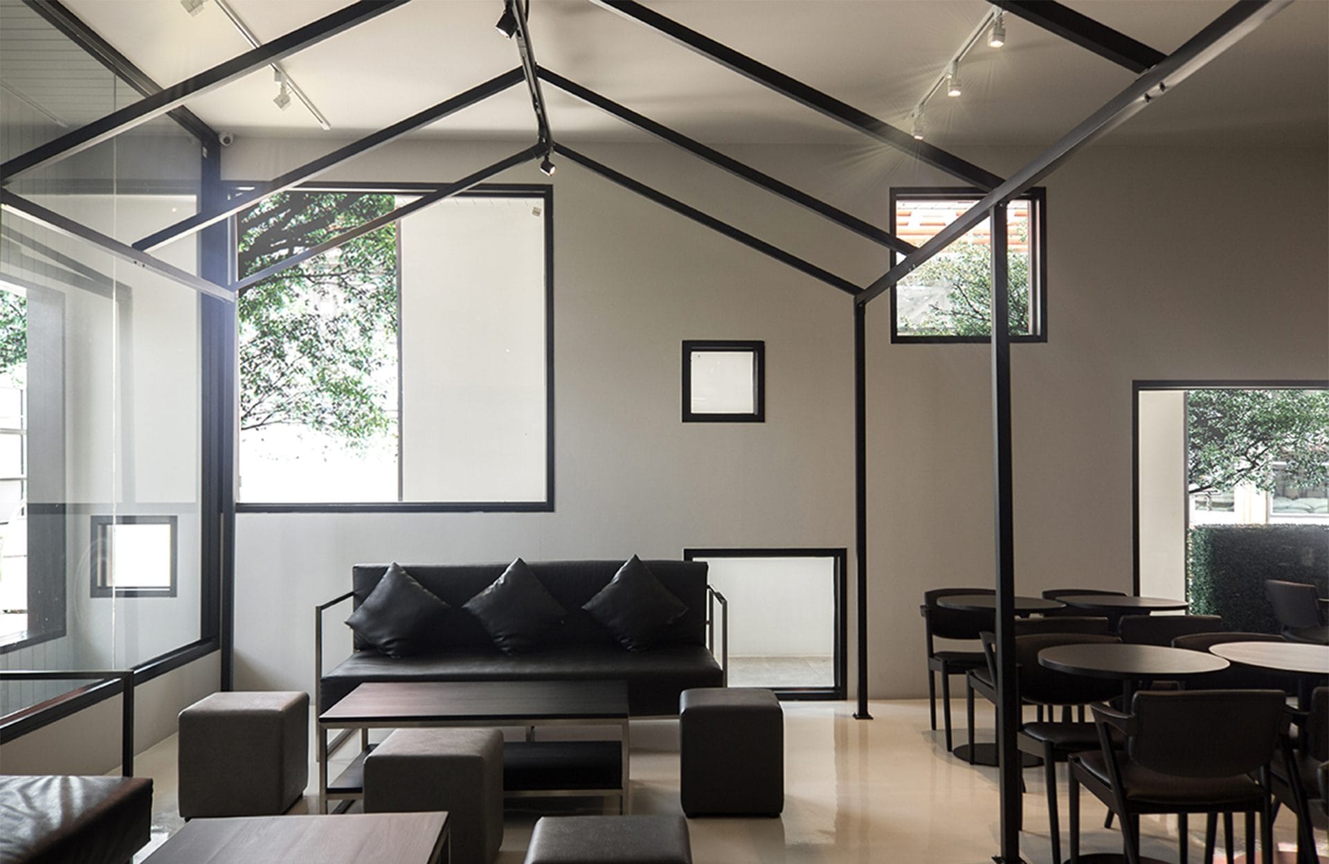 เรากำหนดตำแหน่งของที่ว่างให้เป็นส่วนสำคัญของบ้าน ทั้งสวนหน้าบ้าน คอร์ทยาร์ดกลางบ้าน และ pocket space หลังบ้าน ให้ทุกห้องได้ประโยชน์จากที่ว่าง ได้แสงธรรมชาติ ลมธรรมชาติ และพื้นที่สีเขียว อาคารภายนอกจะมีรูปทรงและสีที่เรียบ เข้ม ขรึม แต่ผสานองค์ประกอบเหล็กที่ดูโปร่ง ทั้งคานเหล็กรูปพรรณและ façade skin ที่เป็นระแนงเหล็กโปร่ง แม้ภายนอกจะดูทึบตัน แต่ façade skin ก็ช่วยสร้างความเป็นส่วนตัวและมุมมองที่สวยงามภายใน