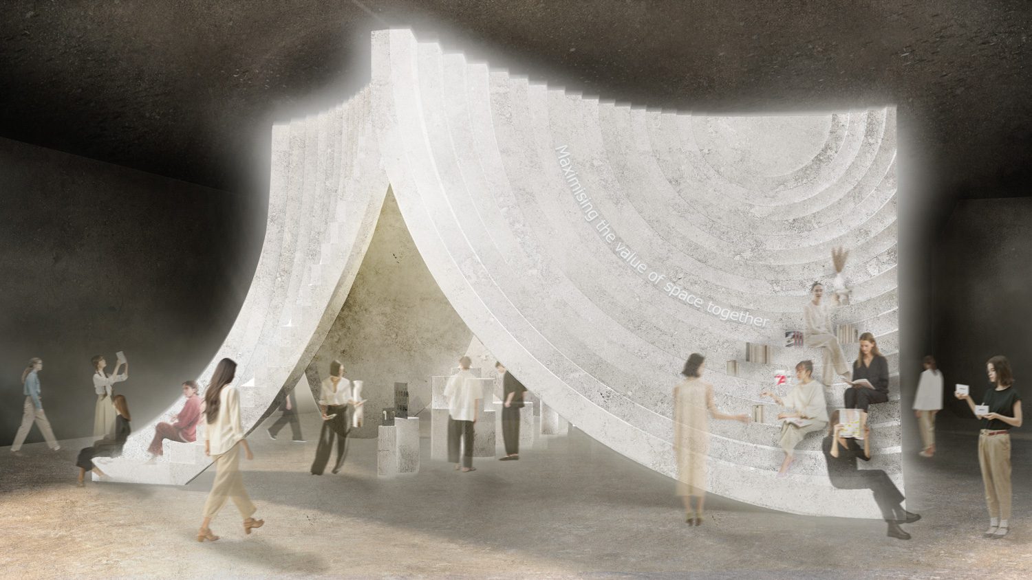 นำเสนอ ‘ปราณสถาน’ พื้นที่สำหรับรวบรวมสติท่ามกลางโลกที่หมุนเร็วและสถานการณ์ต่างๆ ที่รายรอบ โดยนำการตั้งสมาธิของลมหายใจมาแปลเป็นการบีบเข้าและเปิดออกของพื้นที่ภายใน ซึ่งแบ่งเป็น 3 โซนหลัก ตั้งแต่อุโมงค์แห่งการรวบรวมสติ พื้นที่สำหรับเข้าใจสถานะปัจจุบันของตนและสภาพแวดล้อมรอบตัว และศูนย์กลางรวบรวมสมาธิสู่จุดสูงสุดของการมีสติสัมปชัญญะ