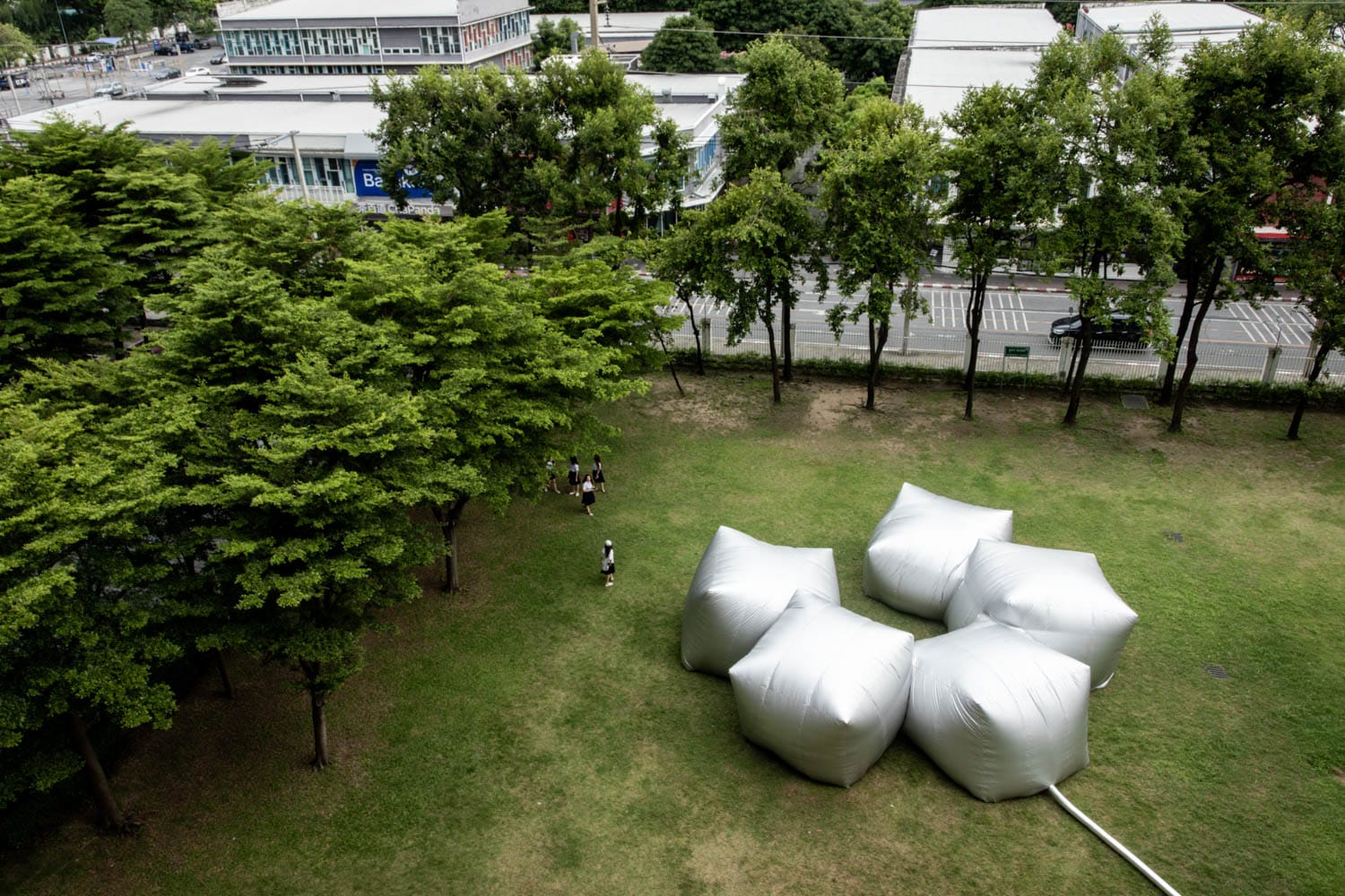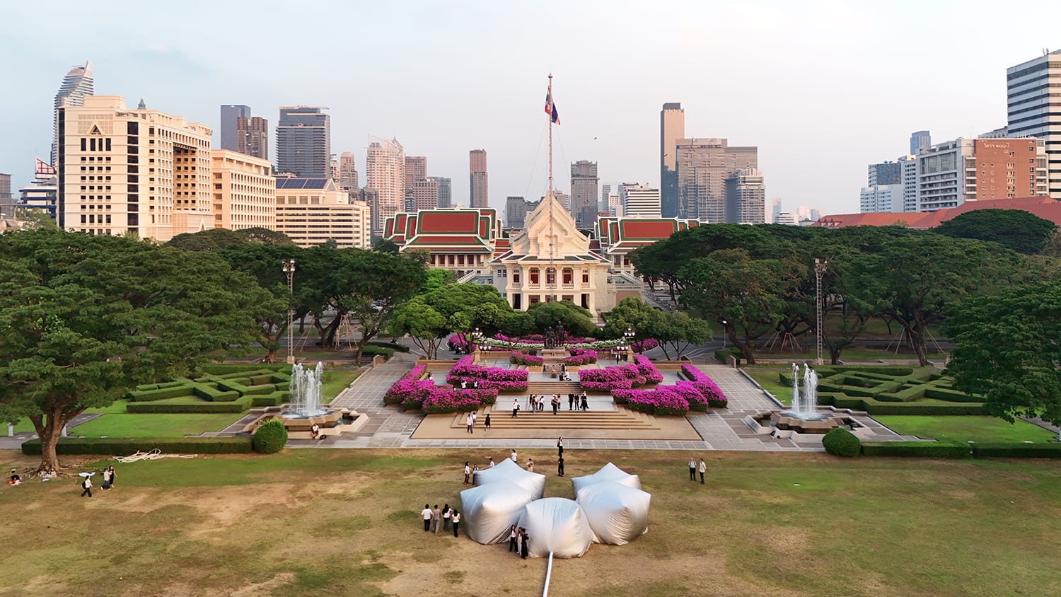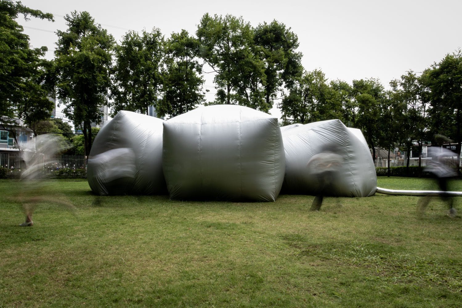 AIRFRAME พาวิลเลียนในรูปแบบ Inflatable design โดยนิสิต INDA ร่วมกับ Paul Cetnarski จาก LANDWORKS ที่สร้างสภาพแวดล้อมอากาศสะอาดชั่วคราว ท่ามกลางวิกฤตมลภาวะของกรุงเทพฯ