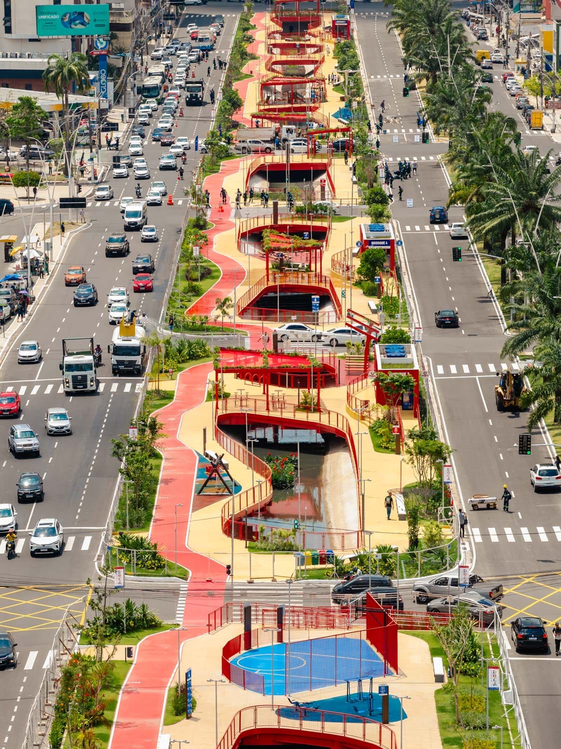 DOCA Linear Park คือโปรเจกต์สะพานสีส้มขนาดยาว 1.2 กิโลเมตร ชวนให้ผู้คนออกมาเดินทอดน่องในเมือง ตั้งอยู่ใจกลางเมือง บริเวณเกาะกลางถนนวิสคอนเด เด ซูซา ฟรังโก (Avenida Visconde de Sousa Franco) ประเทศบราซิล งานออกแบบสะพานเลียบแม่น้ำสีส้ม-เหลือง ชิ้นนี้ออกแบบโดย Natureza Urbana สตูดิโอสถาปัตย์ จาก São Paulo ประเทศ Brazil เปิดใช้งานครั้งแรกในปี 2023