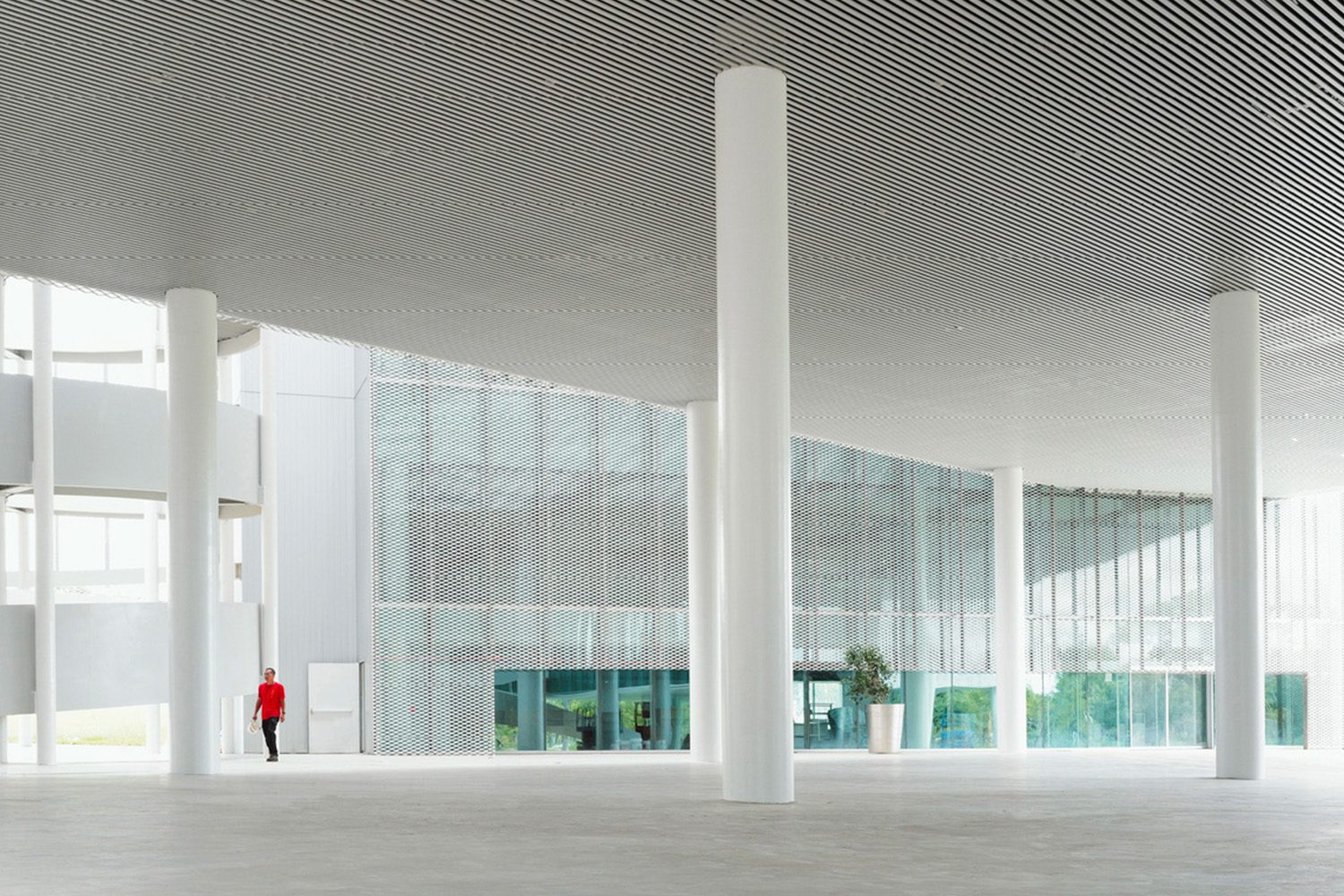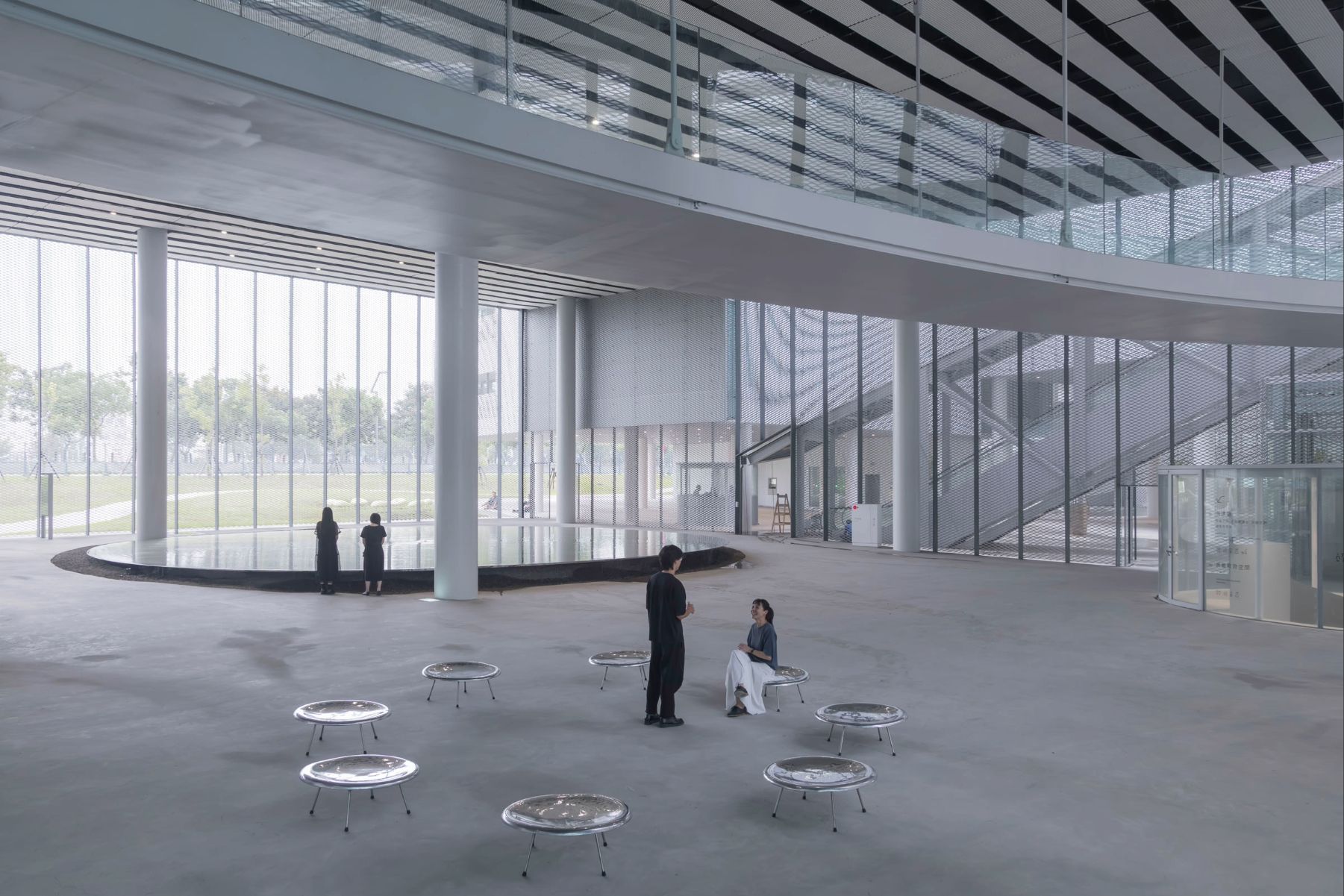 จุดเด่นของโถงแห่งนี้คือ สระน้ำขนาดใหญ่ที่ก่อรูปด้วยแผ่นสเตนเลสโค้ง ริวเอะ นิชิซาวะ (Ryue Nishizawa) สถาปนิกผู้ออกแบบอธิบายว่า น้ำที่ไหลอย่างต่อเนื่องในสระแห่งนี้ เปรียบเสมือนสัญลักษณ์ของ ‘บ่อเกิดพลังงานของความรู้และความคิดสร้างสรรค์ที่หลั่งไหลไม่สิ้นสุด’