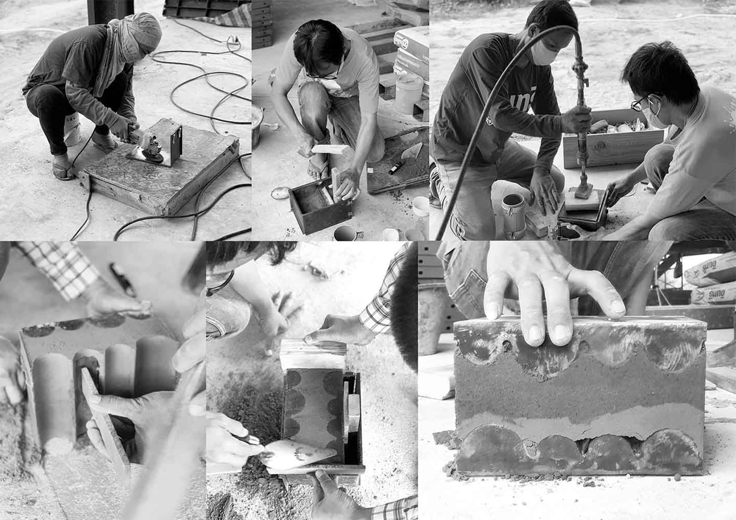 Rammed earth brick with curved surface of steel pipe by La Terre | Photo courtesy of HAS design and research