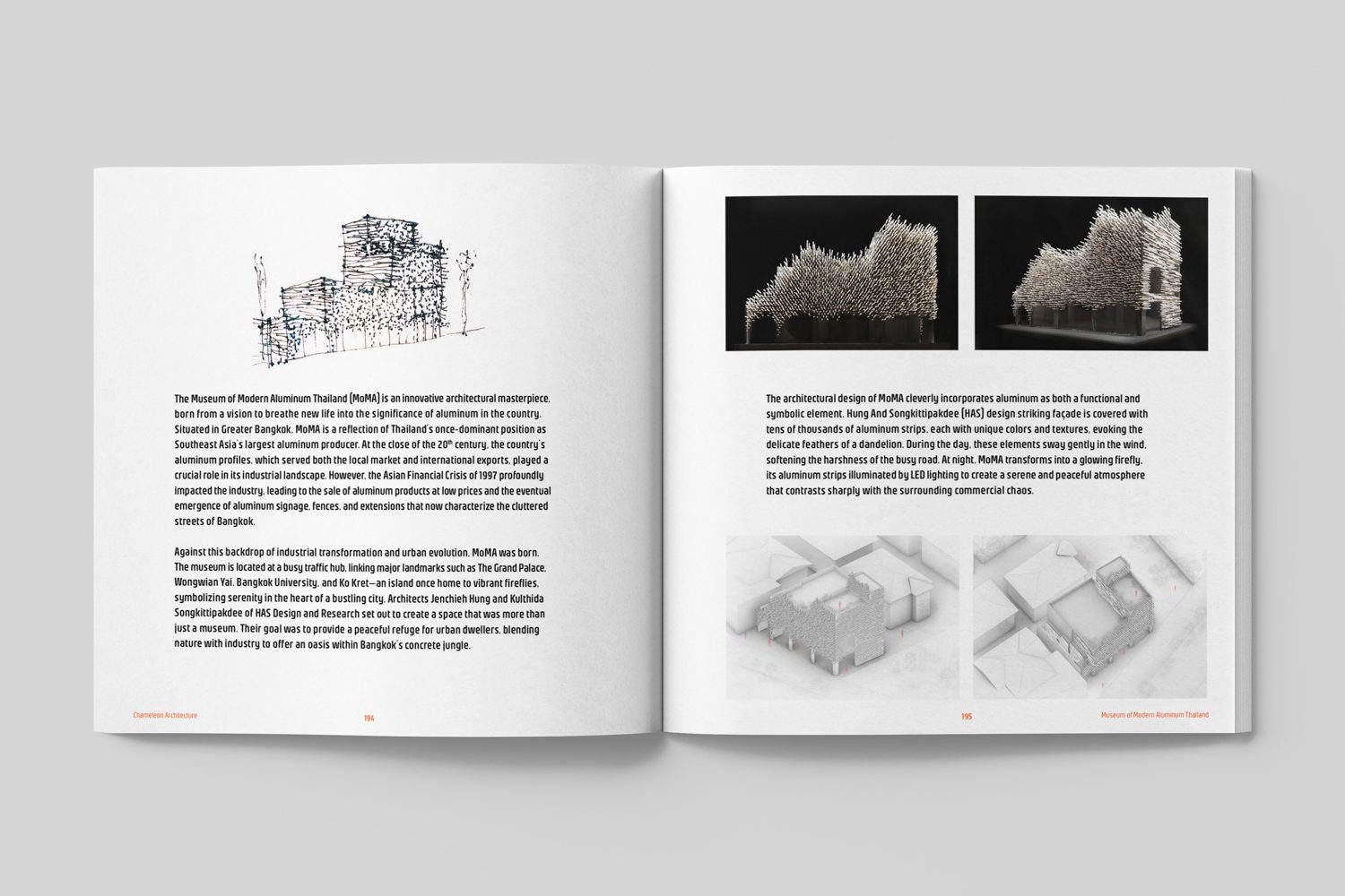 Hung And Songkittipakdee (HAS) also discussed the influence of everyday signage and materials commonly found on local streets and in homes. Drawing from these observations and their accumulated design knowledge, they have developed innovative architectural solutions in projects like the Museum of Modern Aluminum Thailand, the Simple Art Museum, and the Forest Villa. These works emphasize material sustainability and harmonious integration with nature and urban culture.