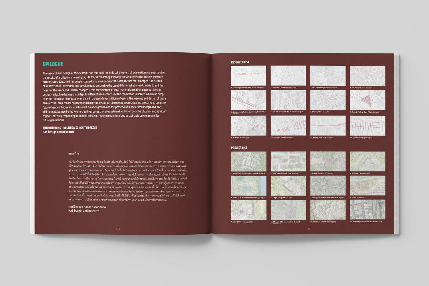 As Jenchieh Hung and Kulthida Songkittipakdee stated in the concluding words at the end of the book “The research and design of the 24 projects in this book not only tell the story of exploration and questioning the results of architecture in everyday life that is constantly evolving, but also reflect the process by which architecture adapts to time, people, context, and environment. The architecture that emerges is the result of improvisation, alteration, and development, enhancing the capabilities of what already exists to suit the needs of the users and societal changes.” And certainly, this ability to adapt may be the key to creating sustainable spaces connecting both physically and spiritually not only responding to change but also creating meaningful and lasting environments for future generations.