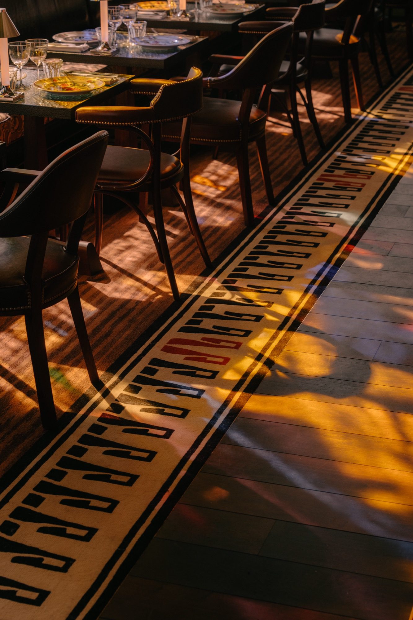 And if you make your way to the very top of the hotel, you’ll arrive at Manfred’s residence, now transformed into La Maison de Manfred, an inviting restaurant designed to feel warm and familiar. It’s a space made for gathering and celebration, whether among family or with a loved one. The interiors are adorned with wooden furniture and green embossed leather seating, set against dark terracotta-tiled walls. Sunlight filters through 19 stained-glass windows (created by glass artist Ara Starck, daughter of Philippe Starck) each one telling a story of place and memory. As evening falls, the restaurant glows with soft light, offering guests a charming view of Metz by night. From this lofty perch, one can even glimpse the distant silhouette of the Centre Pompidou.