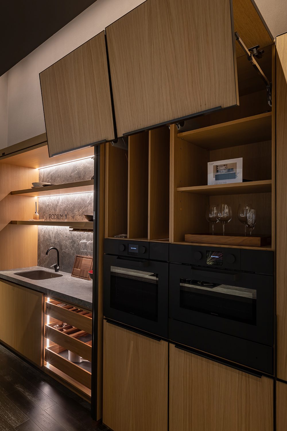 If there’s a system for lifting and one for side-hinged openings, then no presentation would be complete without a sliding door solution. REVEGO duo+duo, Blum’s innovative pocket door system, delivers just that—effortlessly concealed within the cabinetry displays at both Gio Home Kitchen and Podium. What sets REVEGO duo+duo apart is its ease and speed of operation, combined with its suitability for compact spaces. The panels slide smoothly into concealed pockets, allowing even cluttered areas to vanish discreetly behind closed doors, restoring a sense of order and calm to the home.