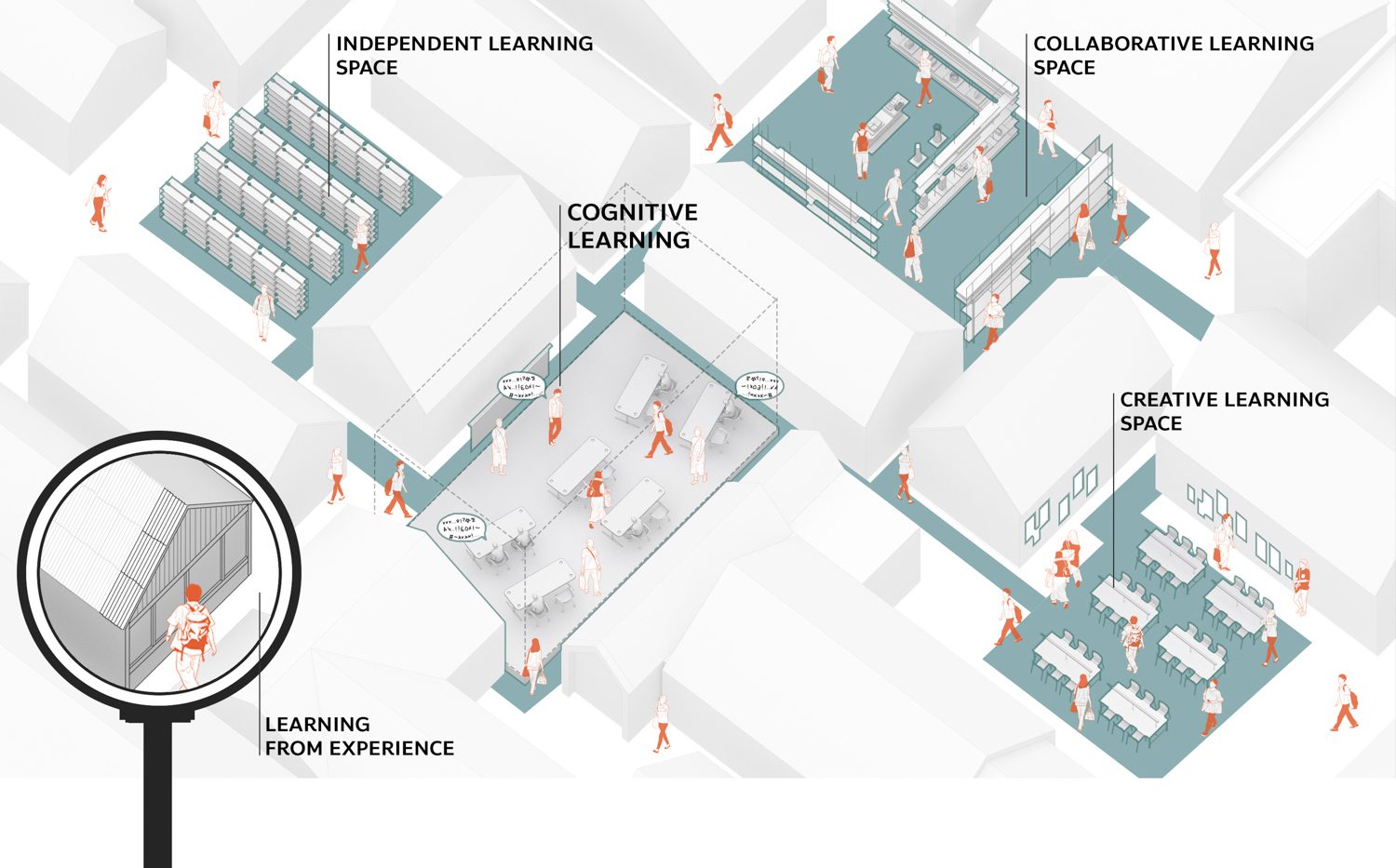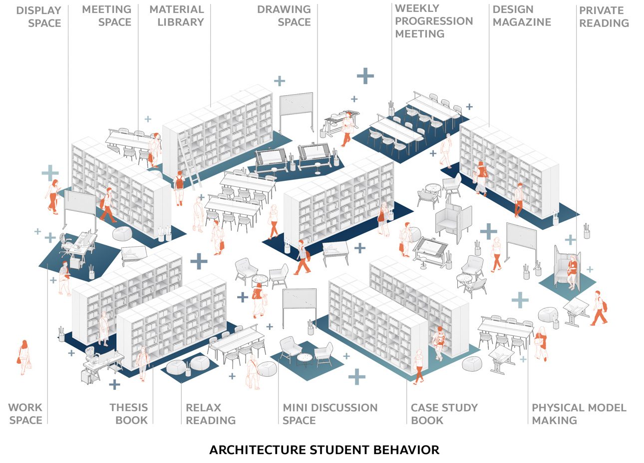 To further encourage cross-disciplinary learning, the designers introduced spatial interaction through circulation. The library’s internal pathway forms a continuous loop, allowing users to move fluidly through every zone and activity, be it browsing, discussion, or reading, before naturally returning to the starting point without retracing their steps.