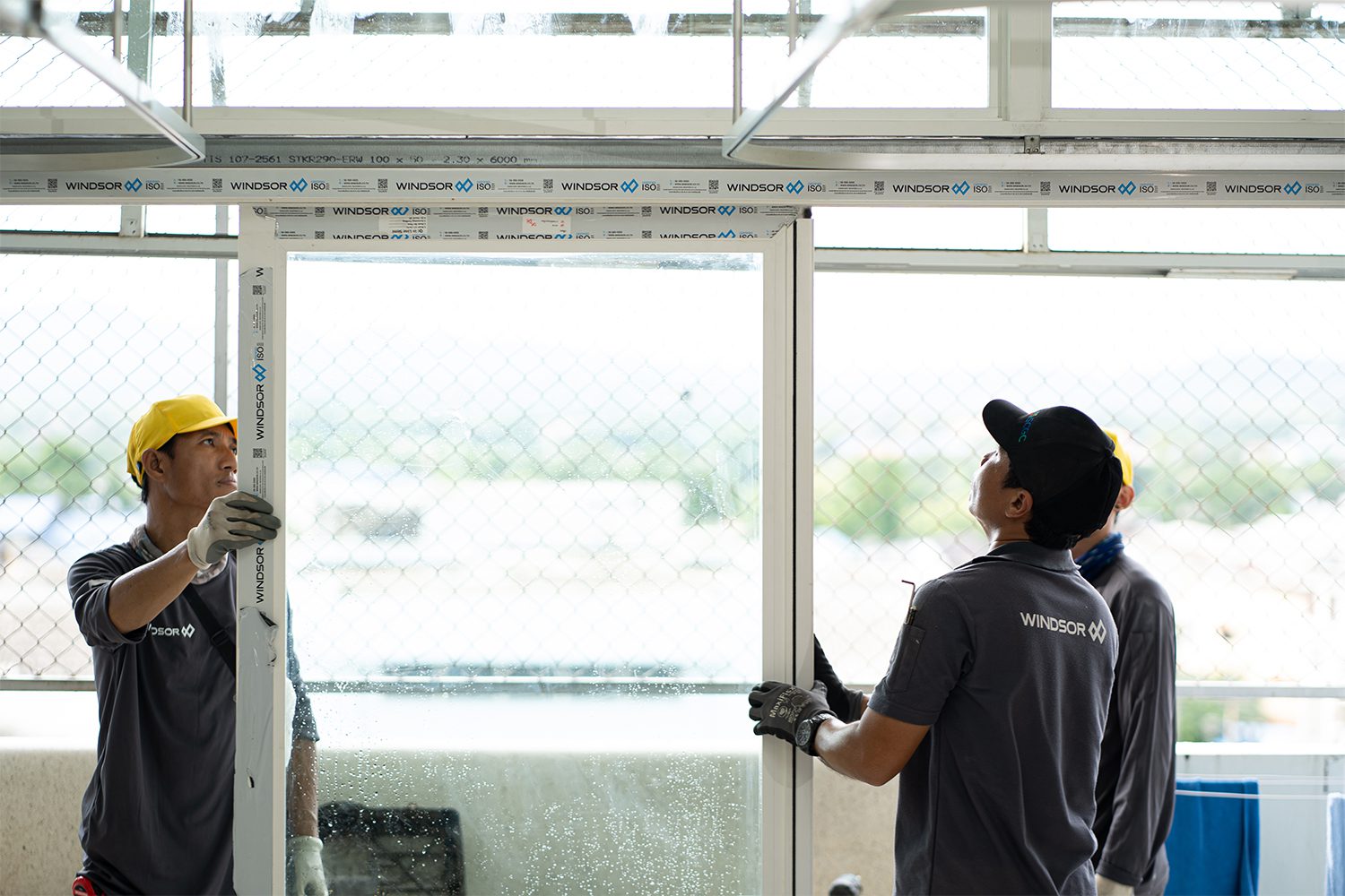 In the context of public buildings, this responsibility becomes exponentially more significant. With quality of life as a central concern, WINDSOR develops its door and window systems equipped with the WINDSOR Advance Vinyl innovation, a high-grade, specially engineered vinyl specifically designed to endure Thailand’s hot and humid climate. The material is meticulously formulated to resist environmental stress while effectively reducing a wide range of disturbances, including noise, dust, heat, and water infiltration. This superior level of performance ensures long-term reliability, allowing buildings to age gracefully over time without concerns about warped frames, cracking, or material degradation.