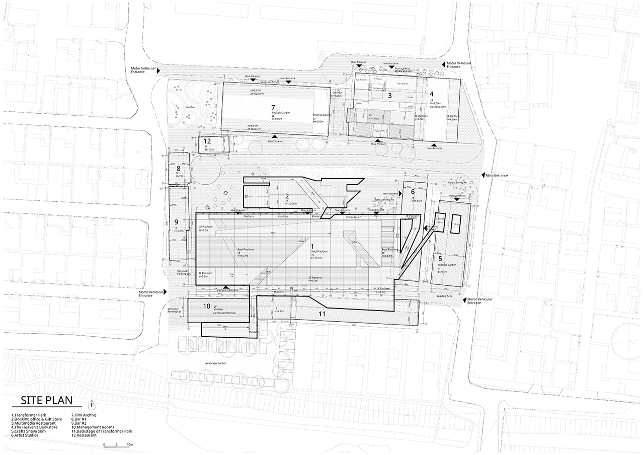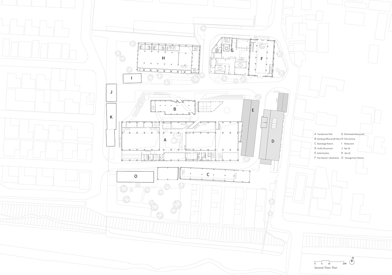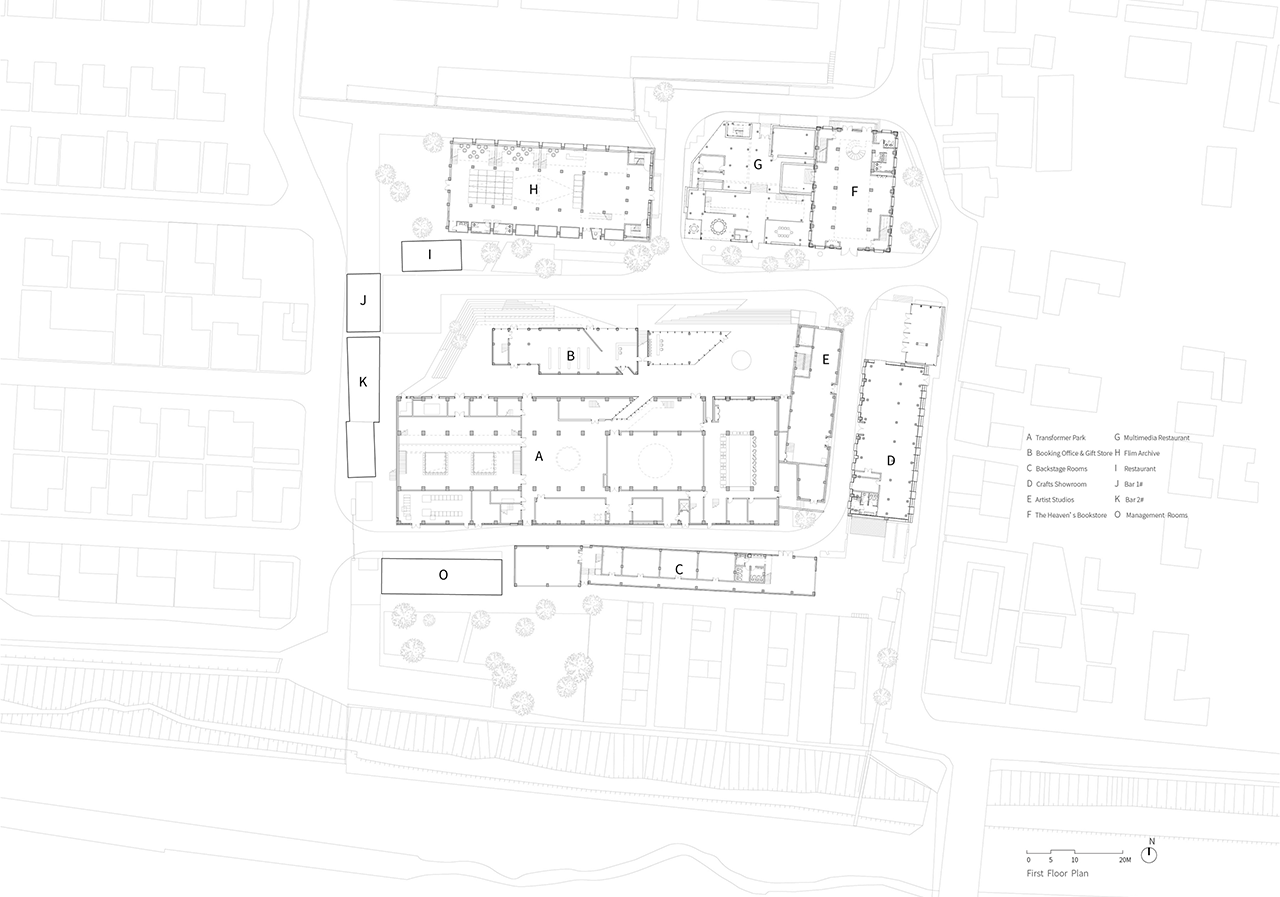 Beyond the main theater building, Theatrical District is composed of a constellation of auxiliary structures that encircle the central performance hall, all adapted from the factory’s original architecture. These include: