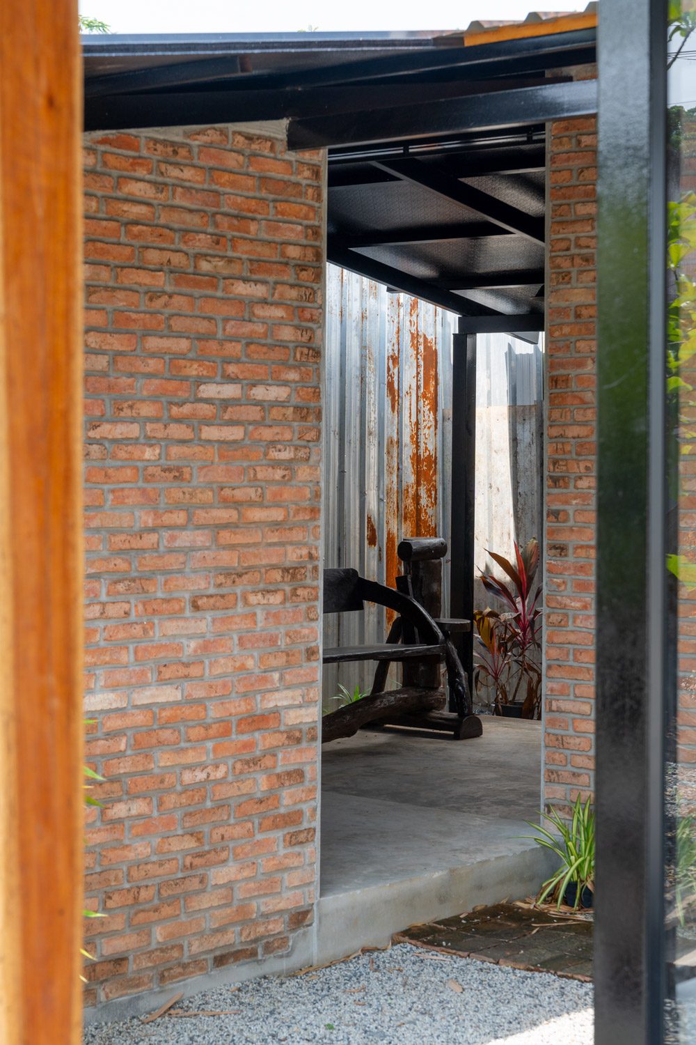 The primary material is clay brick, which becomes the narrative element of the project. It is combined with a modern massing approach, using large wall planes to clearly separate the kitchen area from the living and guest areas. At the same time, people in both spaces can still sense each other’s presence, reflecting the everyday dynamics within a home.