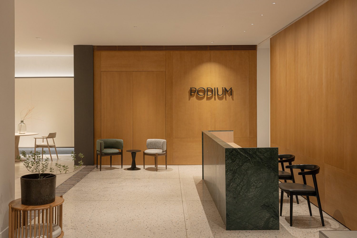 EXPLORE PODIUM SHOWROOM THROUGH ITS NEW RENOVATION, WHERE THE ARCHITECTURAL ELEMENTS PRESENT NOT ONLY A MASTER IN WOODCRAFT BUT ALSO THE CONFIDENCE TO ENGAGE WITH CONTEMPORARY LIVING