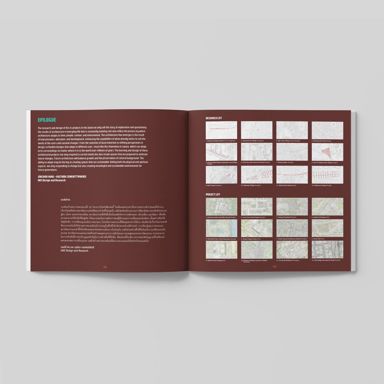 Chameleon Architecture เปรียบสถาปัตยกรรมเสมือนกิ้งก่า ที่มีการพลิกแพลง ปรับตัว และวิวัฒนาการอย่างต่อเนื่อง ผ่านการหลอมรวมระหว่างงานค้นคว้า 12 แห่ง และงานออกแบบ 12 โครงการที่ออกแบบโดยสองสถาปนิก เจอร์รี่ หง (Jenchieh Hung) และกุลธิดา ทรงกิตติภักดี จาก HAS design and research ชื่อของบริษัท HAS – Hung And Songkittipakdee นอกจากจะมาจากนามสกุลของผู้ก่อตั้งทั้งสองแล้ว ยังแฝงแนวคิดของคำว่า ‘มี’ ที่หมายถึง การทำงานซึ่งเชื่อมโยงระหว่างการค้นคว้าและการออกแบบอย่างลึกซึ้ง กิ้งก่าในที่นี้ไม่เพียงเป็นสัญลักษณ์ของการปรับตัวในโลกสถาปัตยกรรม แต่ยังสะท้อนถึงการเติบโตและพัฒนาการที่สอดคล้องกับบริบทของสังคมและสิ่งแวดล้อมที่เปลี่ยนแปลงอยู่ตลอดเวลา แนวคิดนี้ถูกถ่ายทอดผ่านโครงการที่หยั่งรากลึกในบริบทท้องถิ่น โดยเฉพาะในประเทศไทย จีน และประเทศอื่นๆ ในเอเชีย หนังสือเล่มนี้ชวนให้ผู้อ่านพิจารณาศักยภาพของสถาปัตยกรรมในการสร้างพื้นที่ที่ยั่งยืน ยืดหยุ่น และใช้งานได้จริง ซึ่งสามารถปรับตัวและกลมกลืนไปกับสภาพแวดล้อมรอบตัวได้อย่างลงตัว