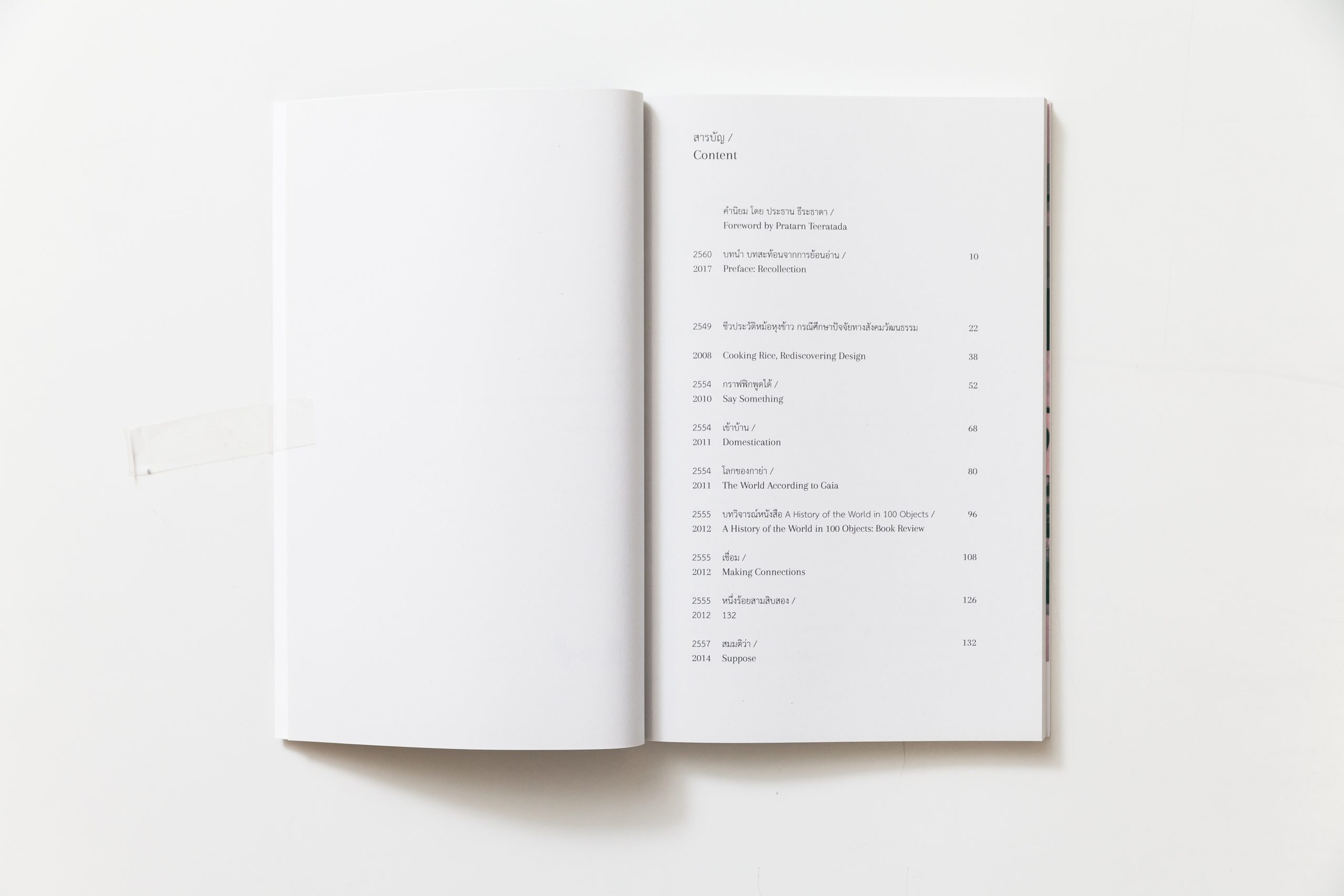 ข้อสังเกตหนึ่งที่น่าสนใจในงานเขียนของจุฑามาศ คือการบอกเล่าเรื่องราวและตั้งคำถามต่องานออกแบบที่สัมพันธ์ไปกับชีวิตประจำวัน ประวัติศาสตร์ของผู้คน และข้าวของสามัญ (ไม่) ธรรมดา บทความที่น่าสนใจใน ‘ย้อน คิด อ่าน เขียน’ นอกเหนือไปจากการกล่าวถึงชีวประวัติของหม้อหุงข้าวและความสัมพันธ์ของมันที่มีต่อบริบททางสังคมวัฒนธรรมแล้ว บทความขนาดสั้นที่เขียนให้กับนิทรรศการของพิม สุทธิคำ ในปี 2011 ในชื่อ Domestication และบทวิจารณ์หนังสือ History of the World in 100 Objects ของ Neil MacGregor ซึ่งเคยตีพิมพ์ใน art4d ปี 2012 ก็ชวนให้เราได้ย้อนกลับมามองบทบาทของข้าวของในชีวิตประจำวันที่รายล้อมอยู่รอบตัวเราและผลกระทบของมันที่มีต่อเราตั้งแต่ในระดับบุคคลถึงระดับสังคม